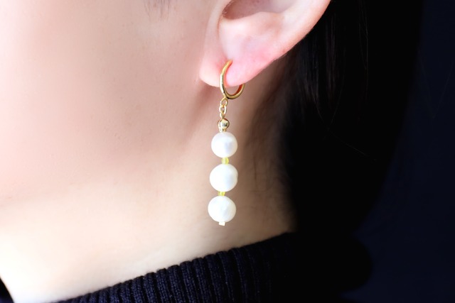 淡水パールxイエローカルセドニーの3-pieceイヤリング (#980)