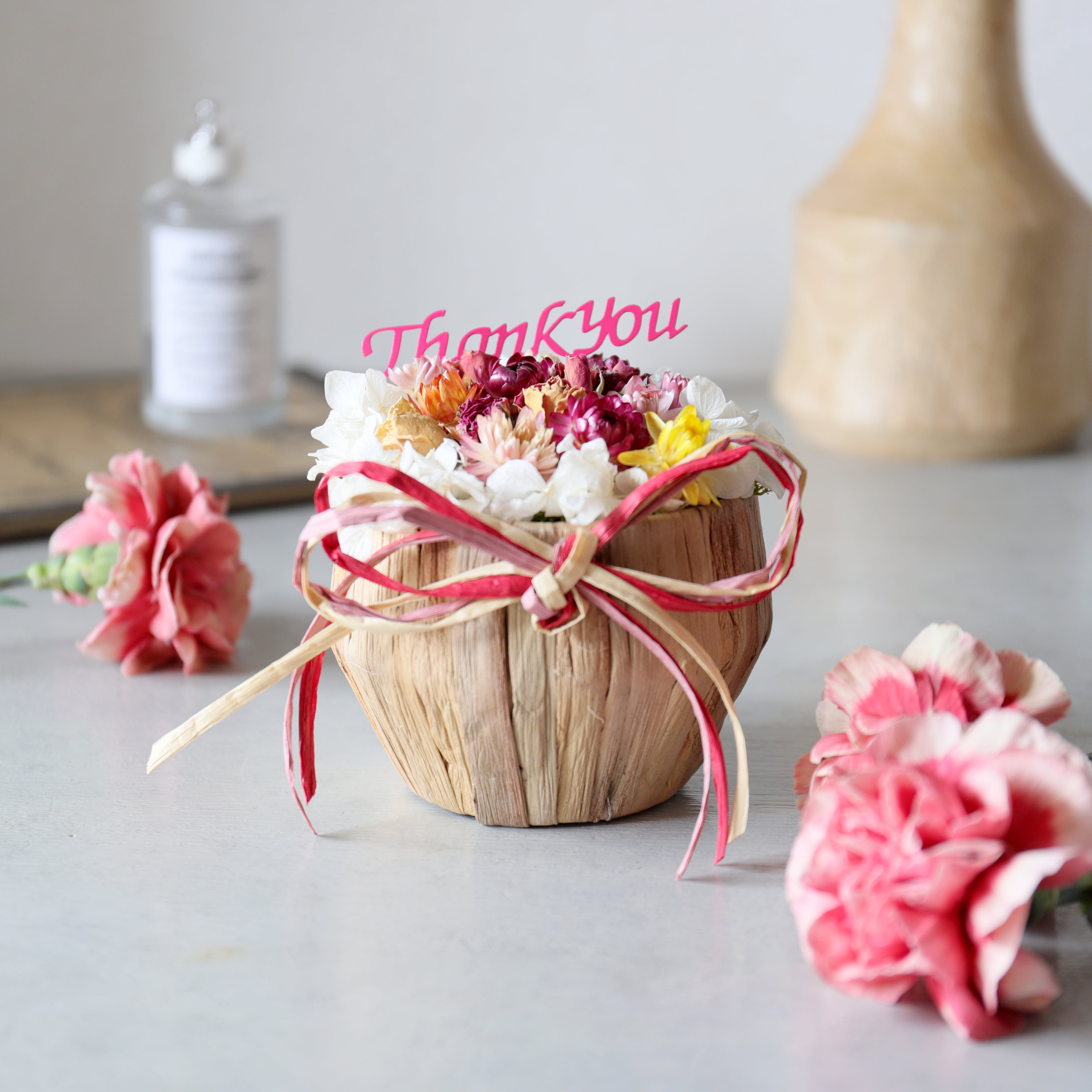 ドライローズとヘリクリサムをふんだんに盛り込んだ