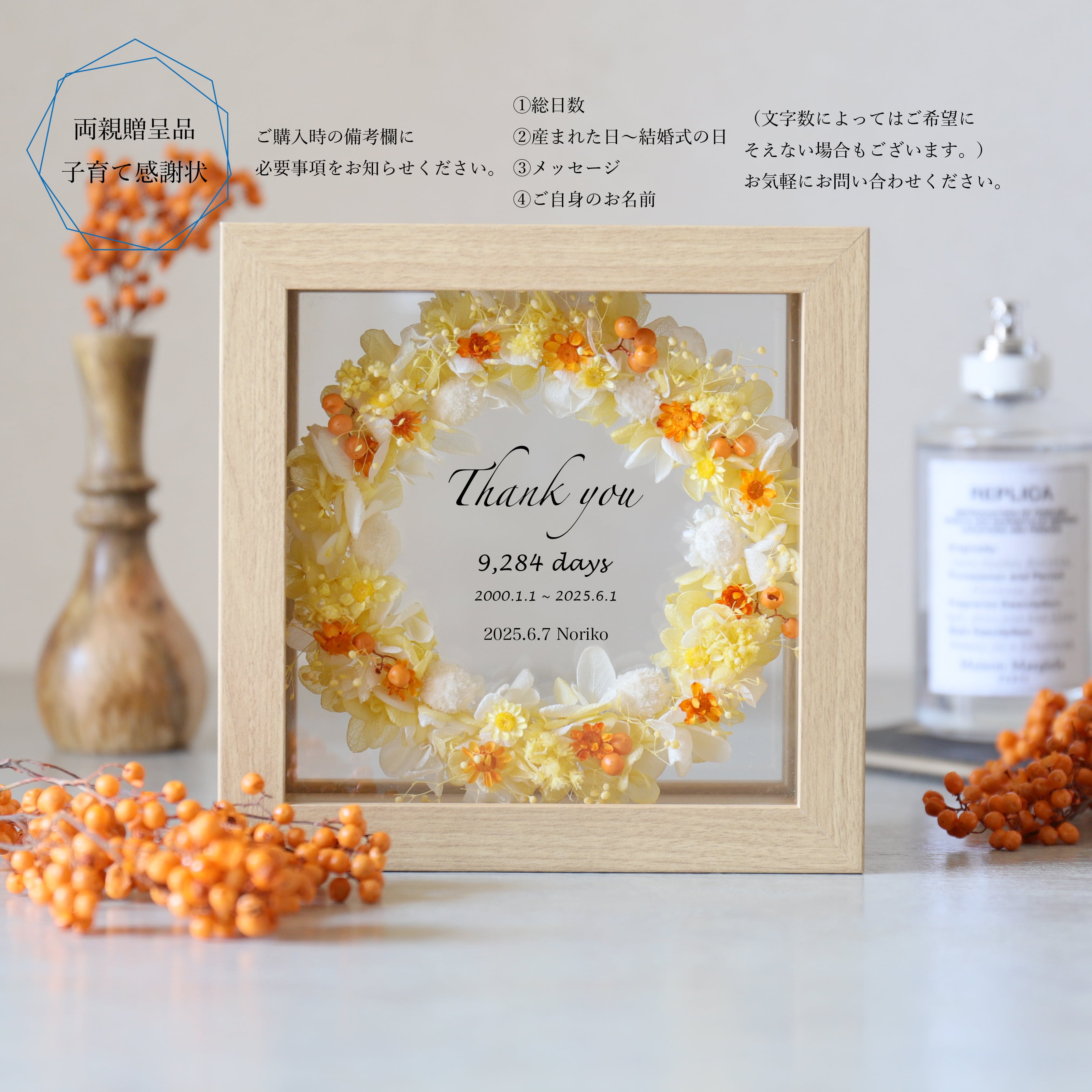 【両親贈呈品・結婚祝い・子育て感謝状】ウッドガラスフレーム(スクエアmini)イエローオレンジ #1270