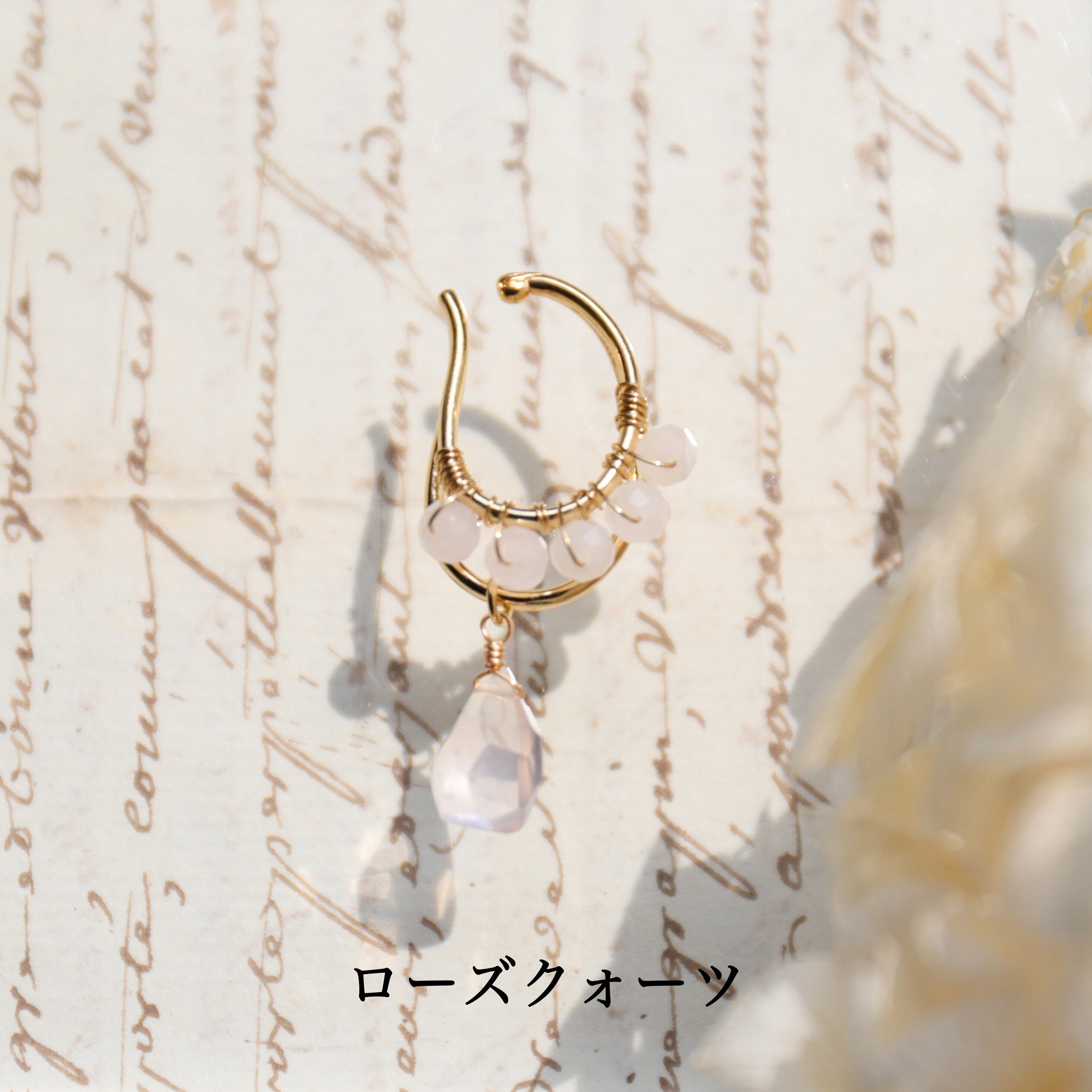 半透明で淡くうすいピンクのローズクォーツを使用。