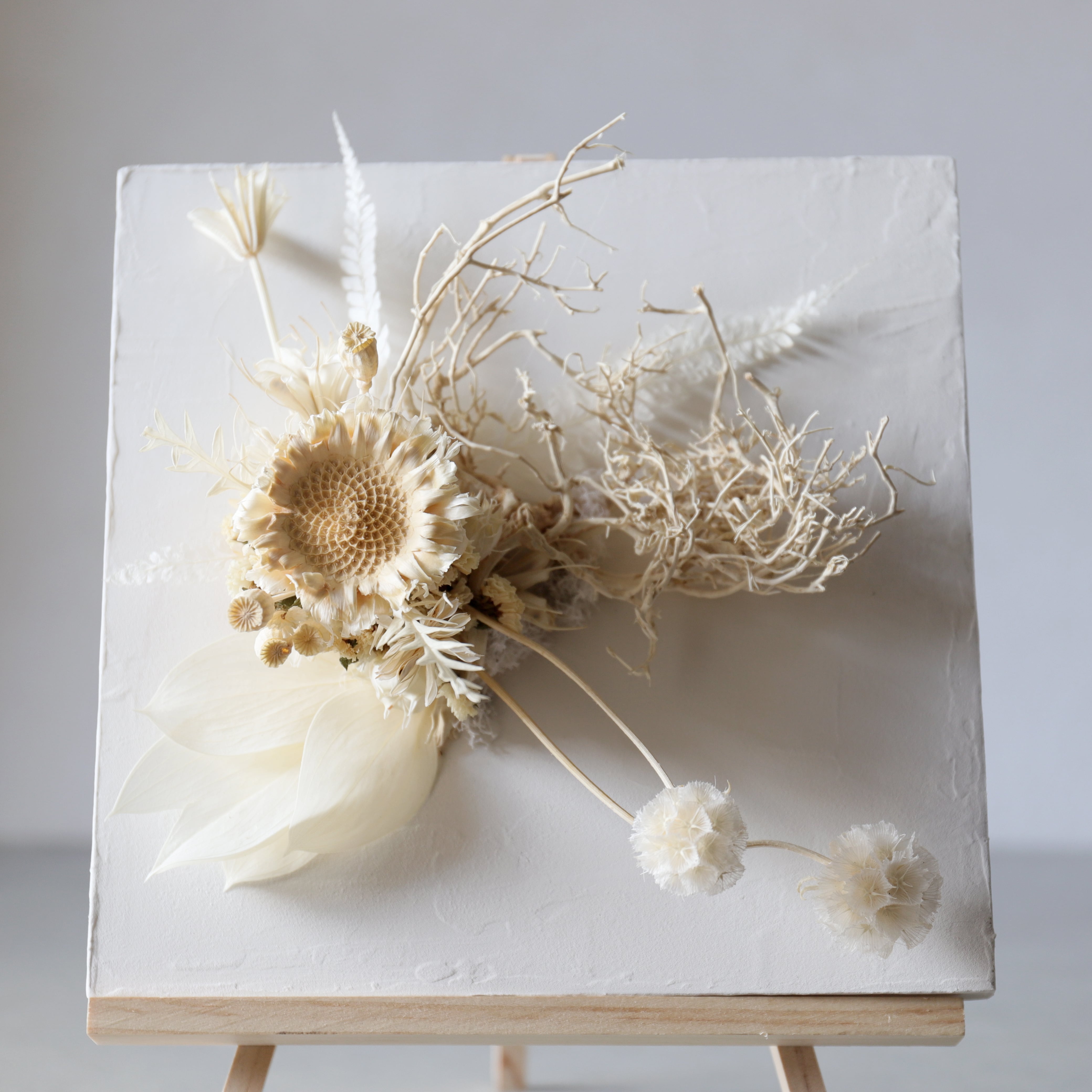 24 x 24 cmのウッドパネルに漆喰風のペイントを施し、