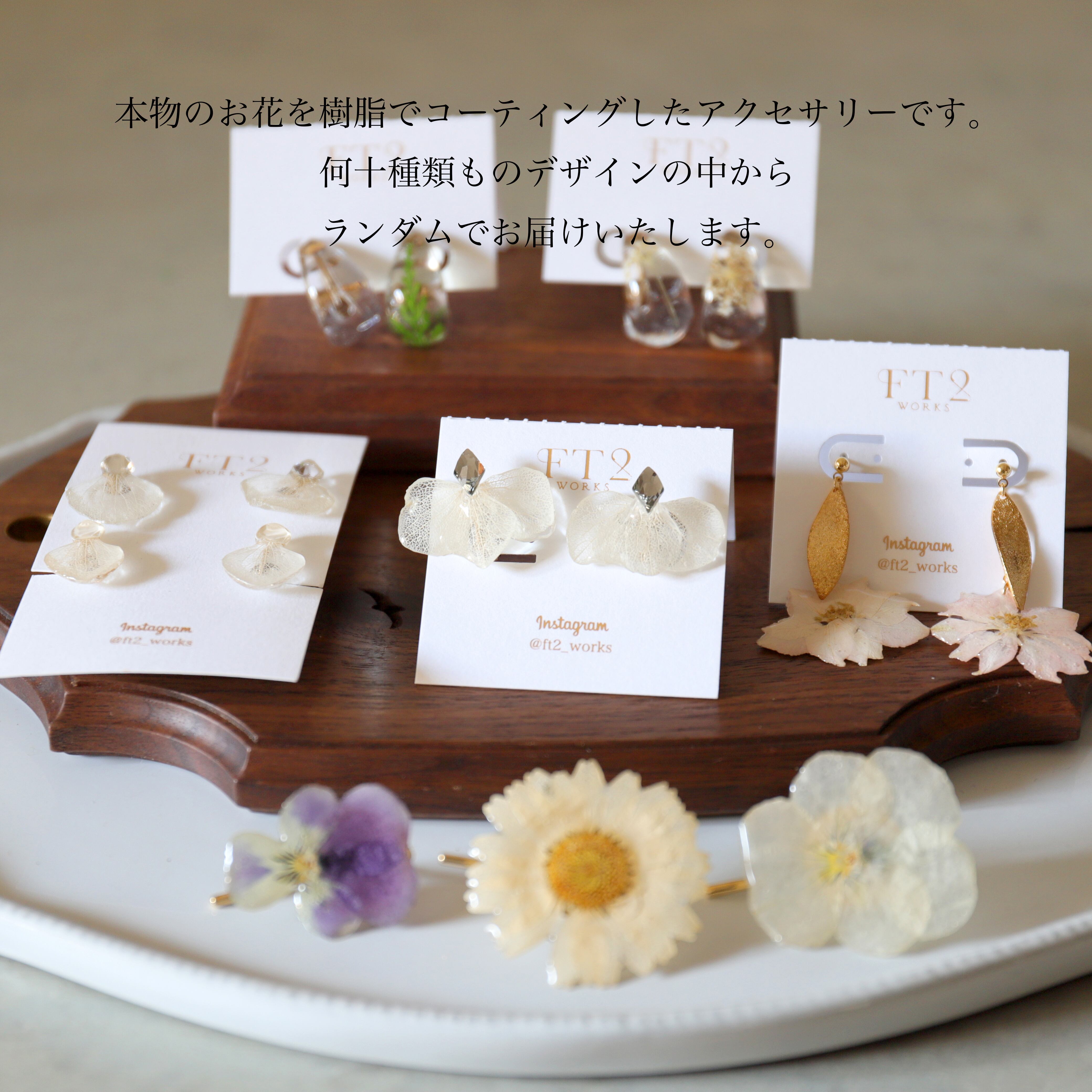 ②本物のお花のアクセサリー7点セット(イヤーアクセ5点+ポニーフック2点)