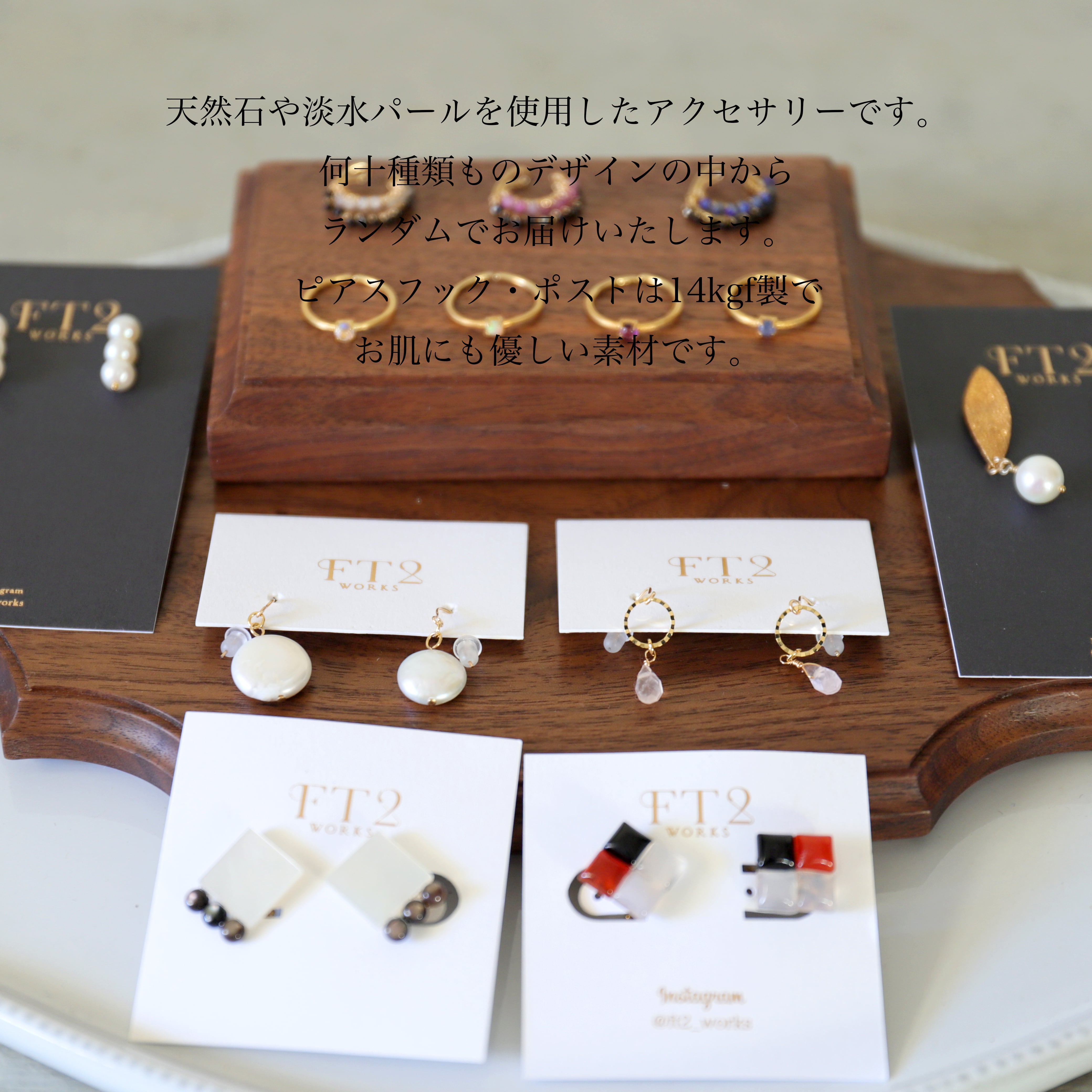 ③天然石・パールアクセ5点セット(イヤーアクセ3点+イヤカフ1点+リング1点)