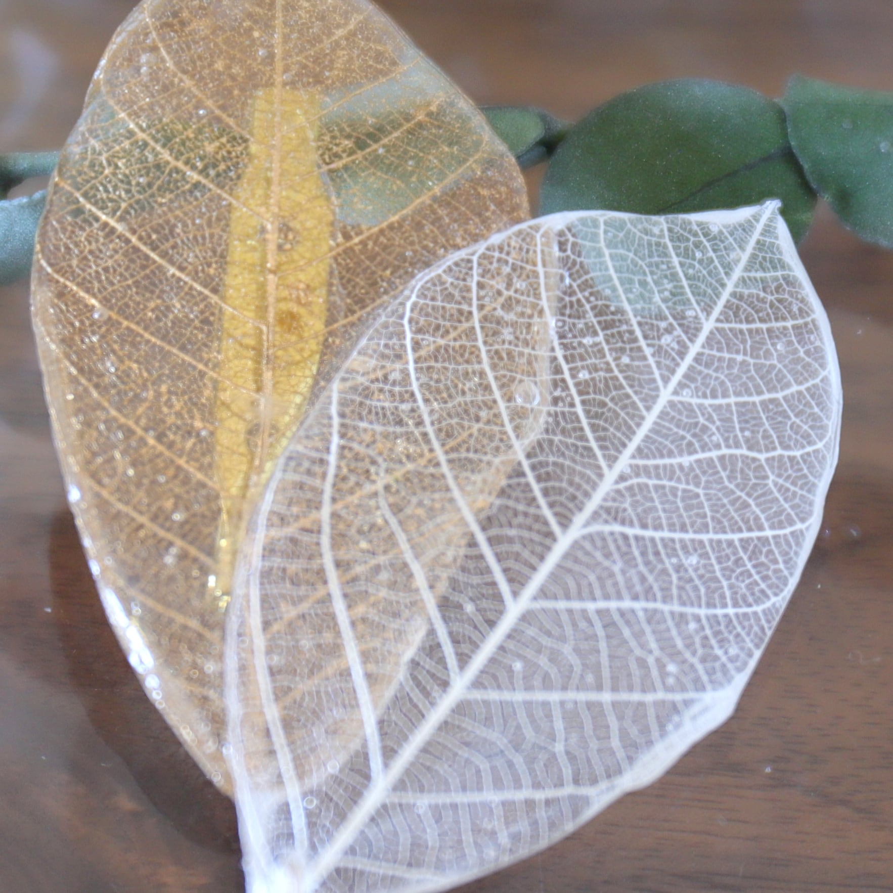 樹脂でコーティングされたホワイトとゴールドのリーフを重ねて