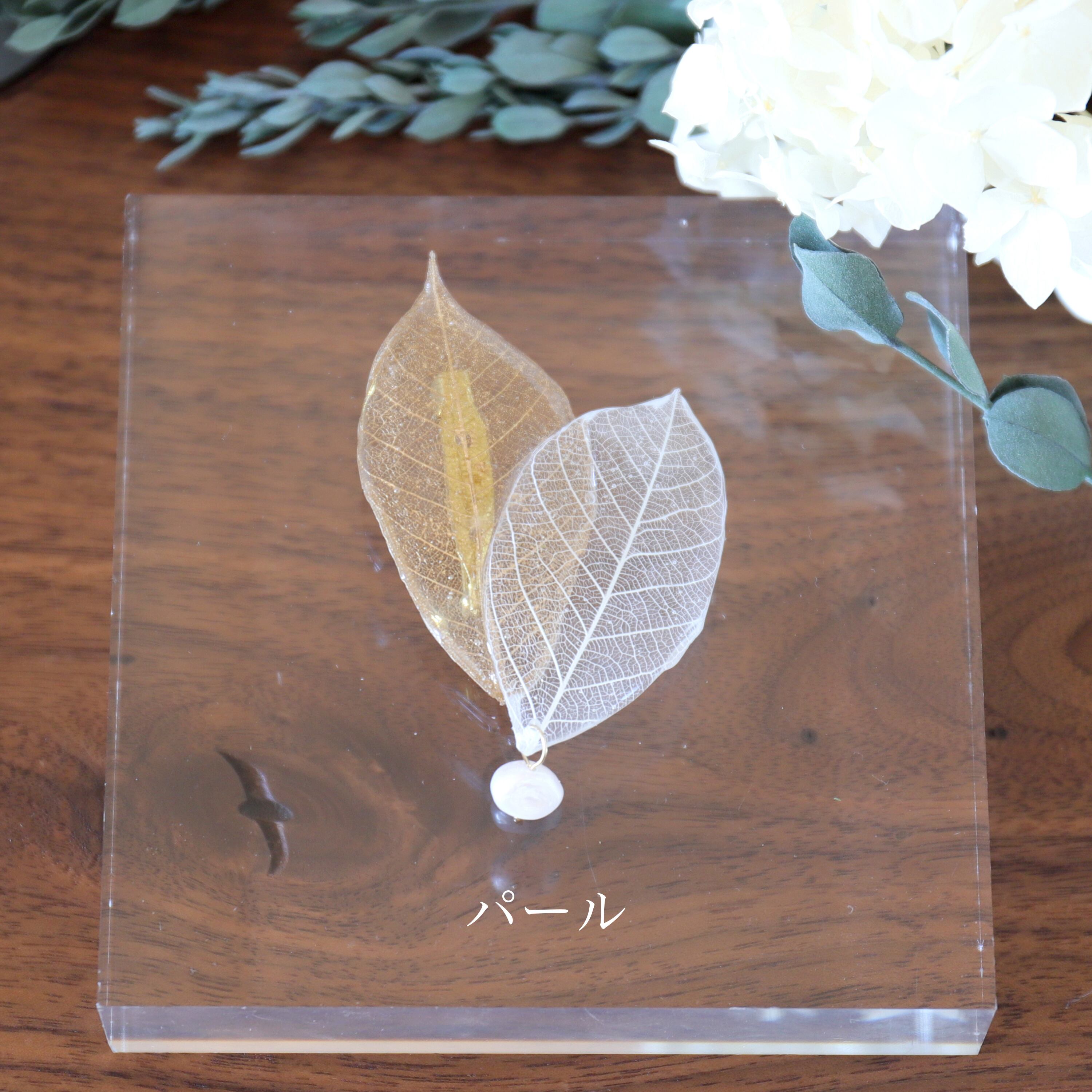 リーフにパールや天然石を合わせることで