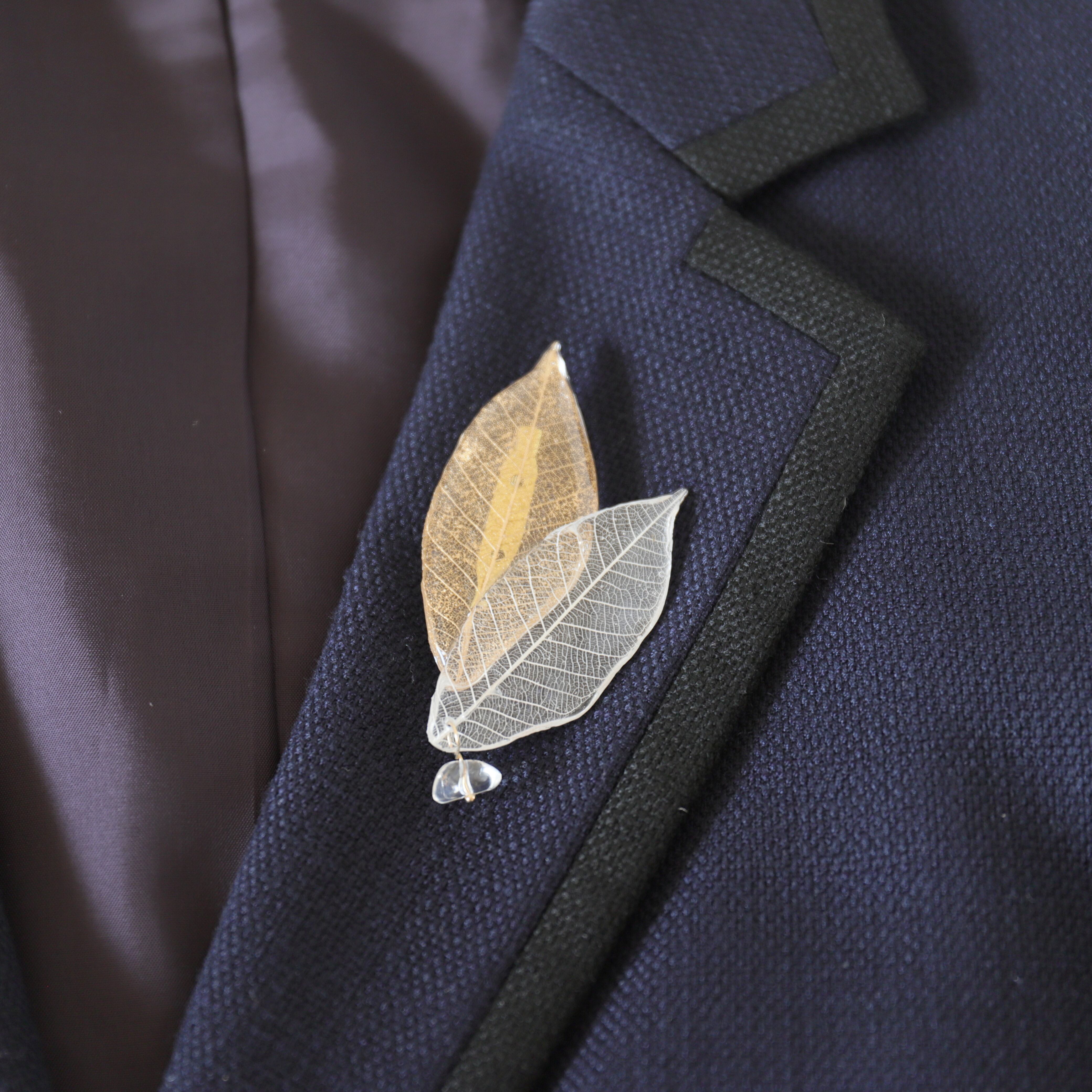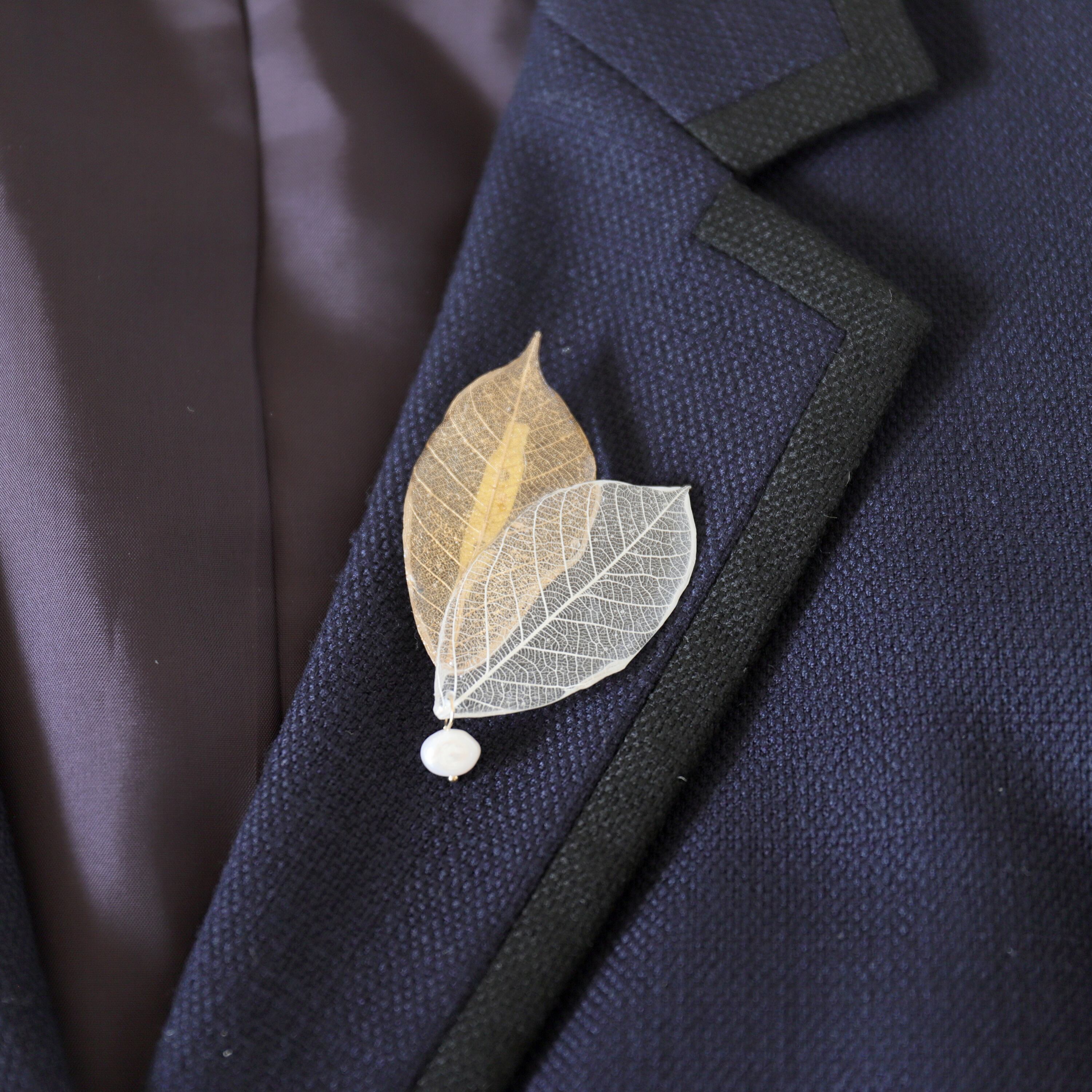 ダブルリーフとパール/クリスタルのブローチ(2タイプ) #1292