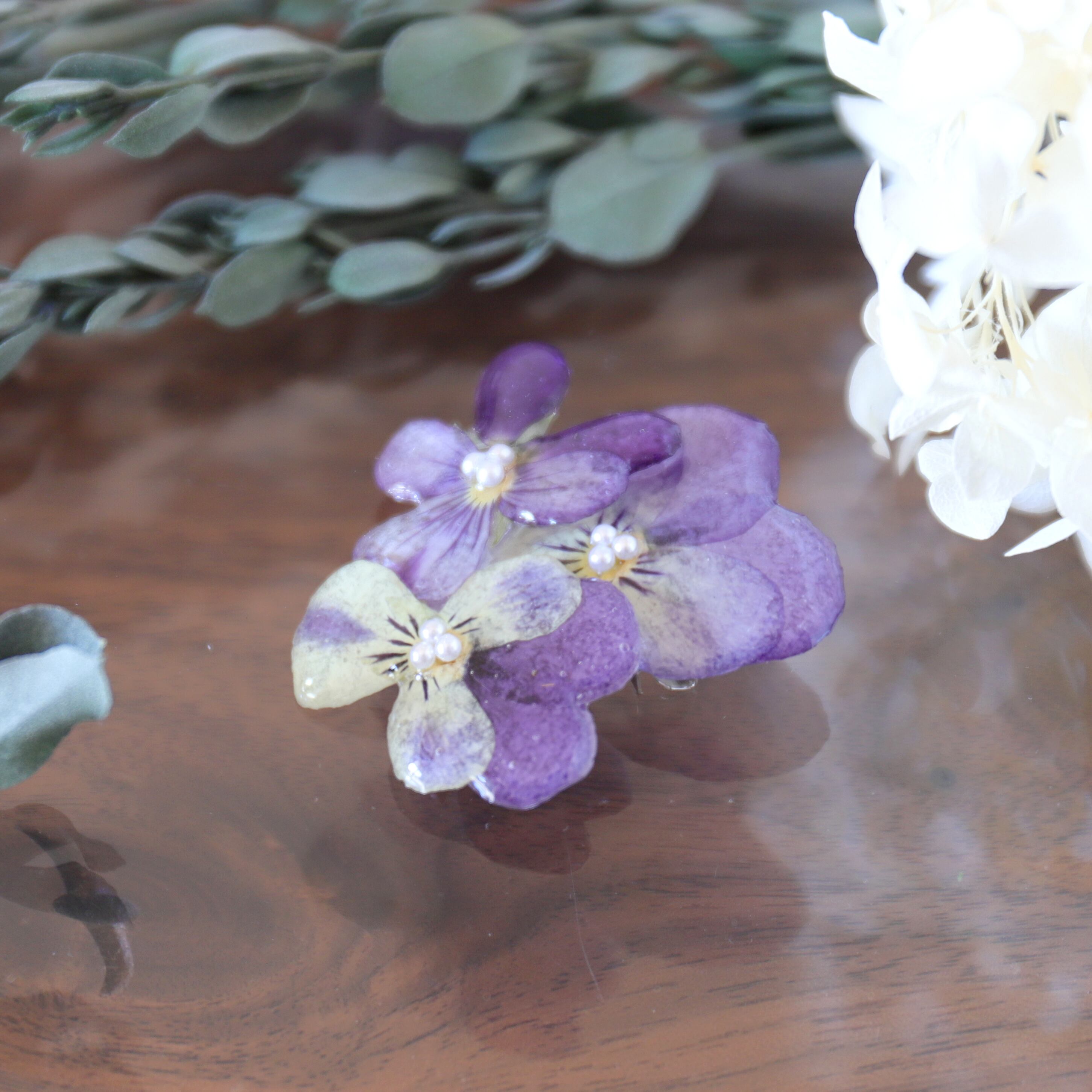 樹脂コーティングした3枚のビオラを重ね合わせた