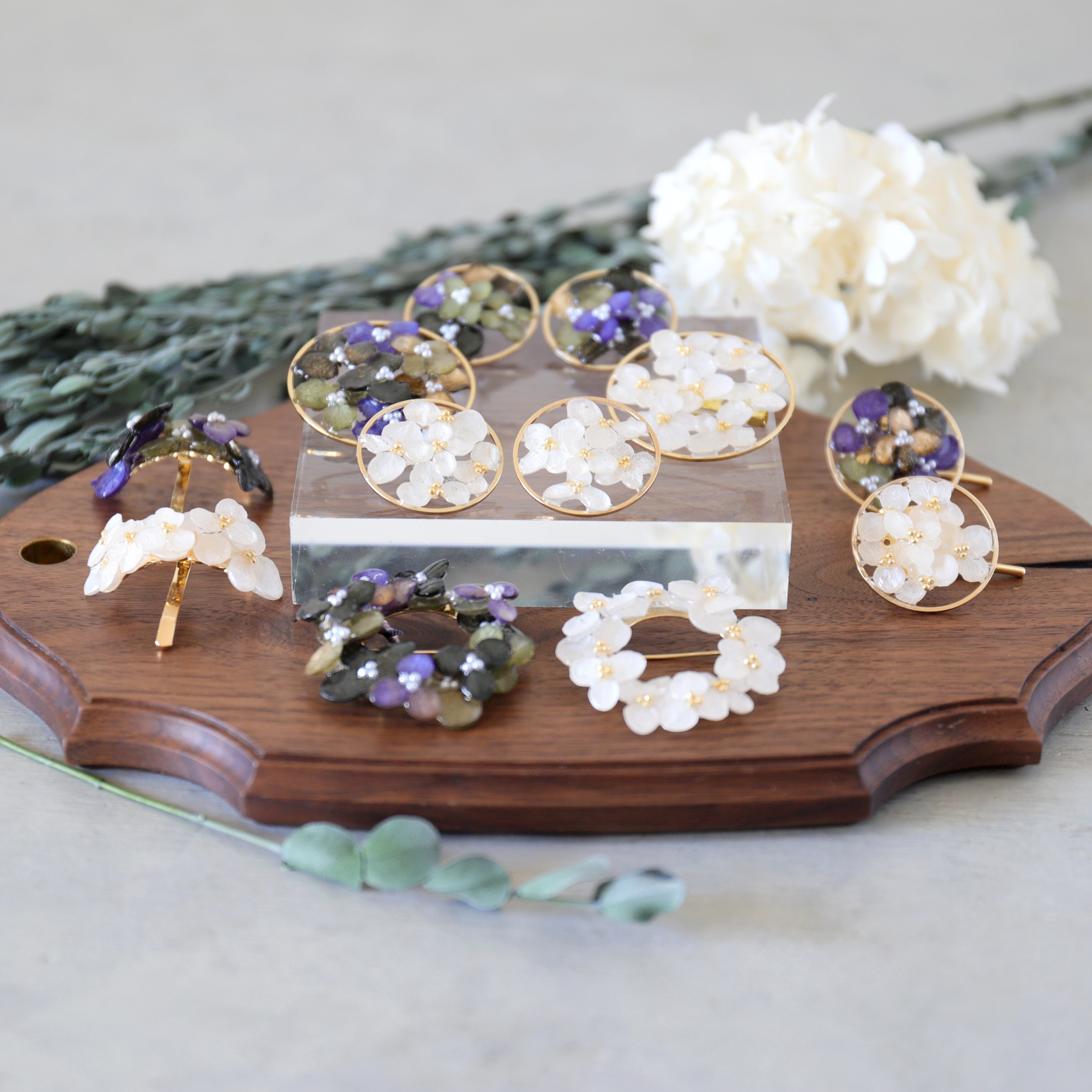 プリザーブド加工されたアジサイを一枚一枚丁寧に樹脂でコーティングし