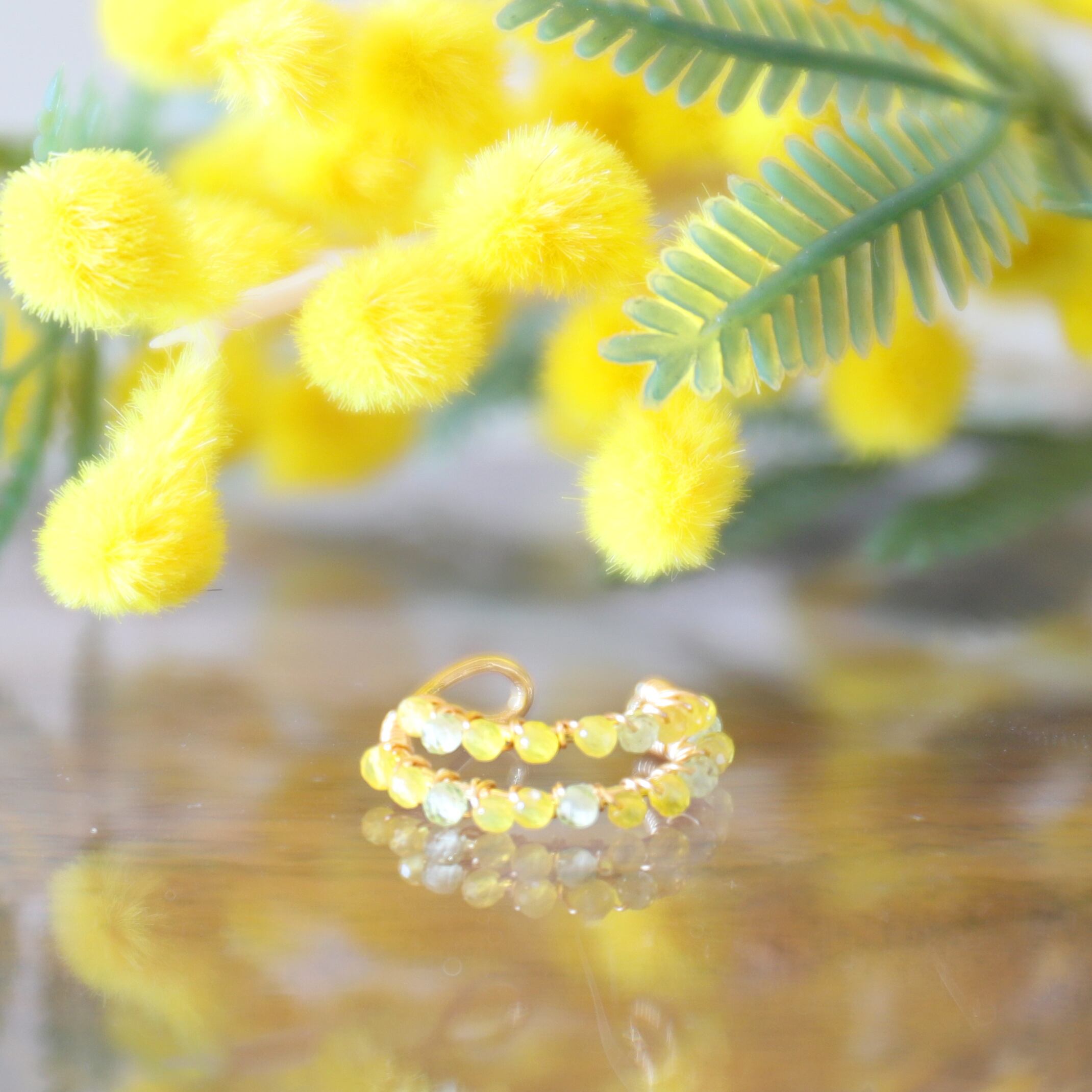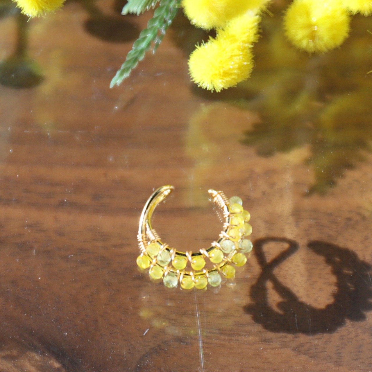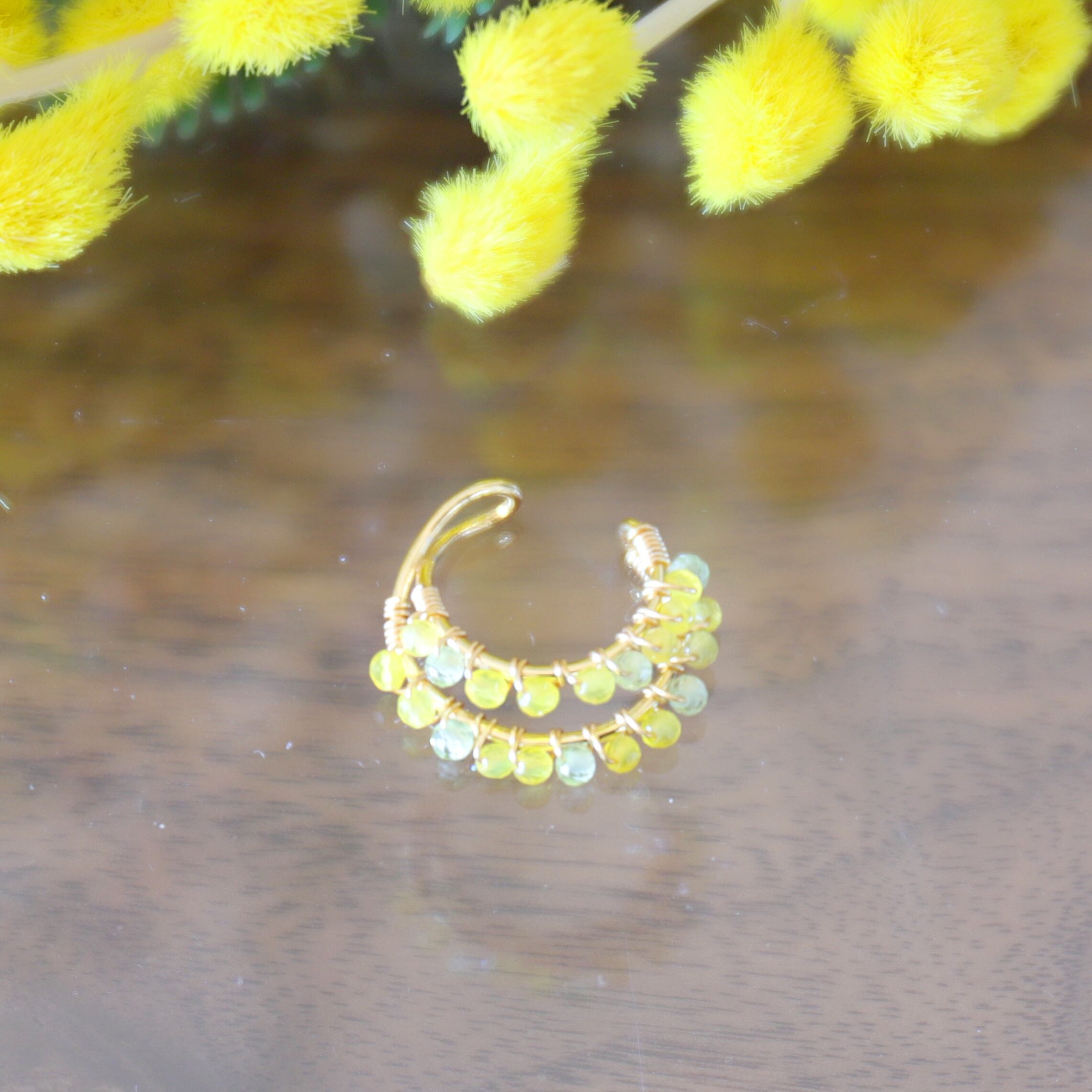 イエローカルセドニーとペリドットのミモザ二連イヤーカフ(片耳用) #1301