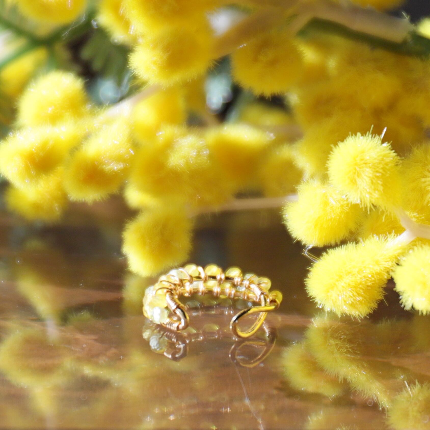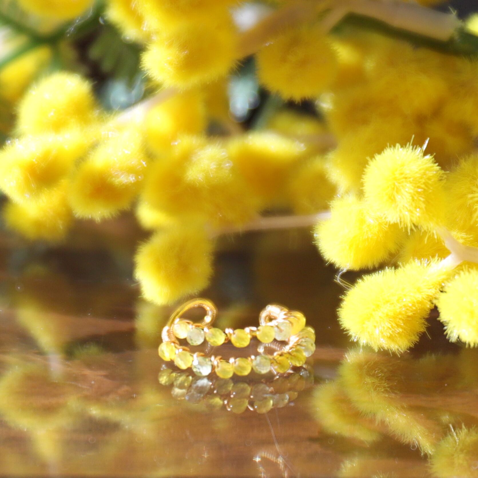 満開のミモザを表現したイヤカフです。