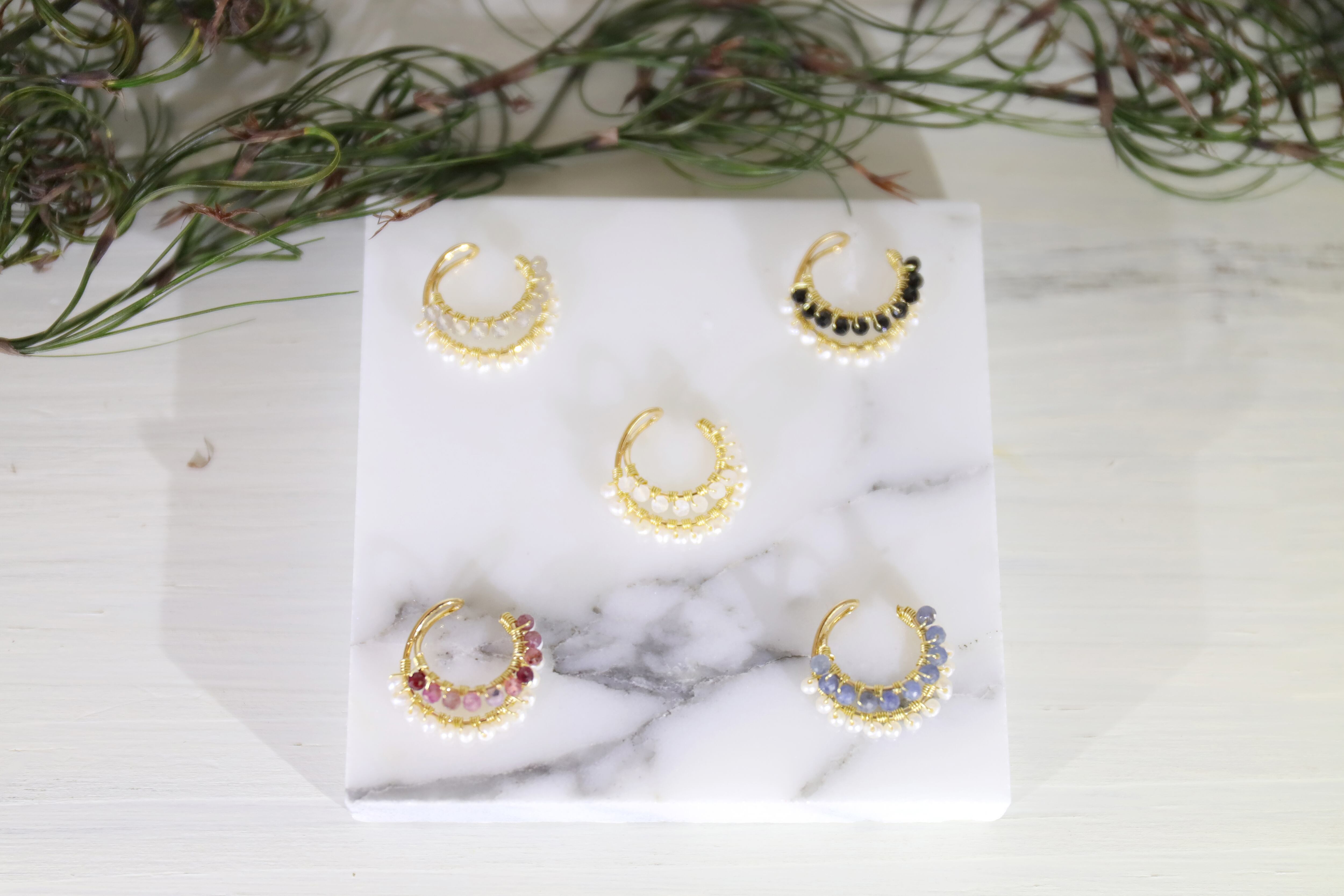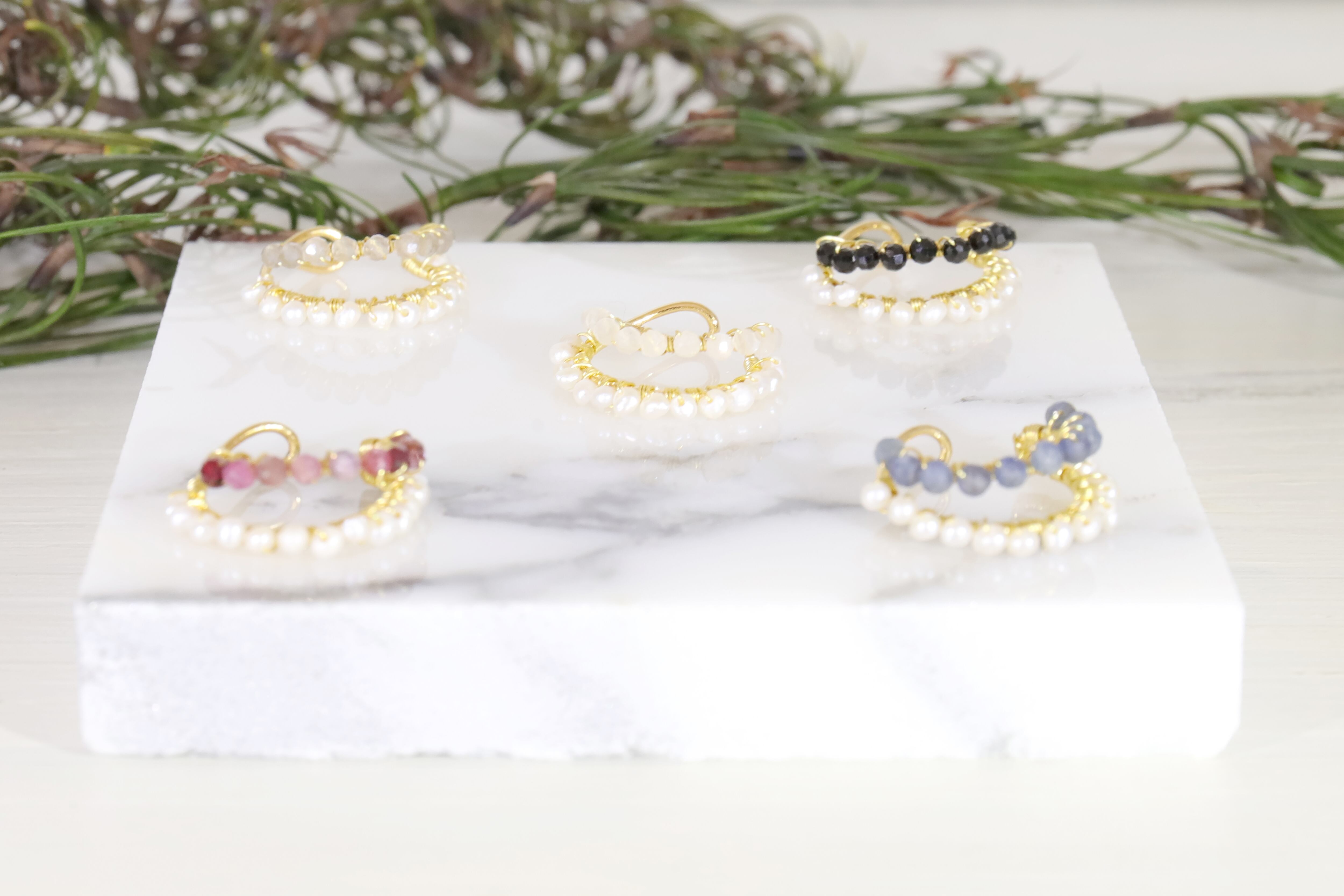 2mmの極小天然石を使用してさりげなく小ぶりで