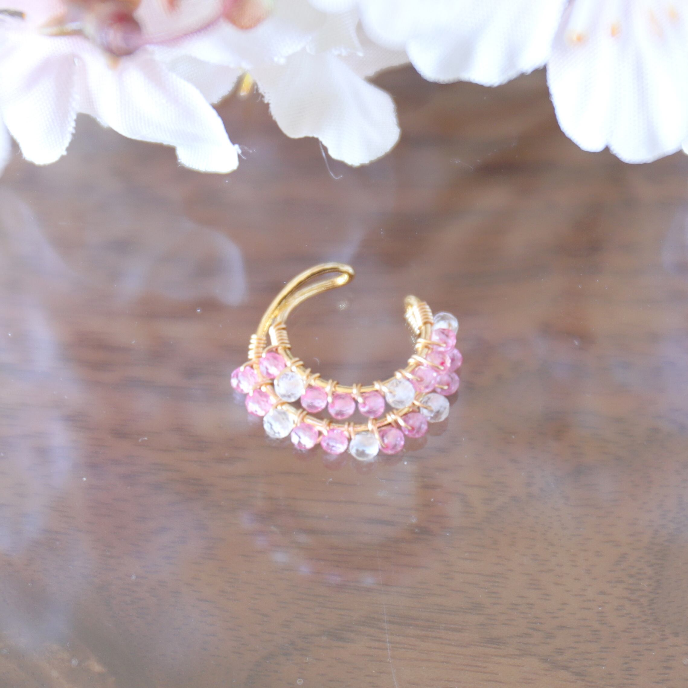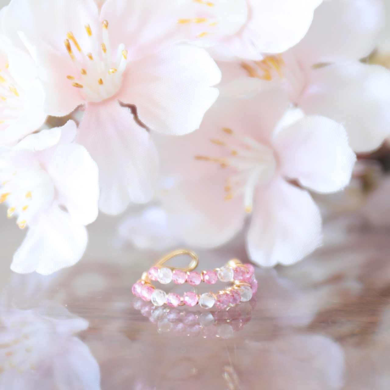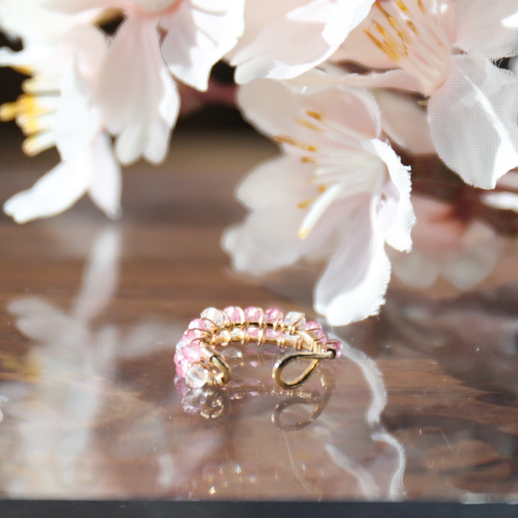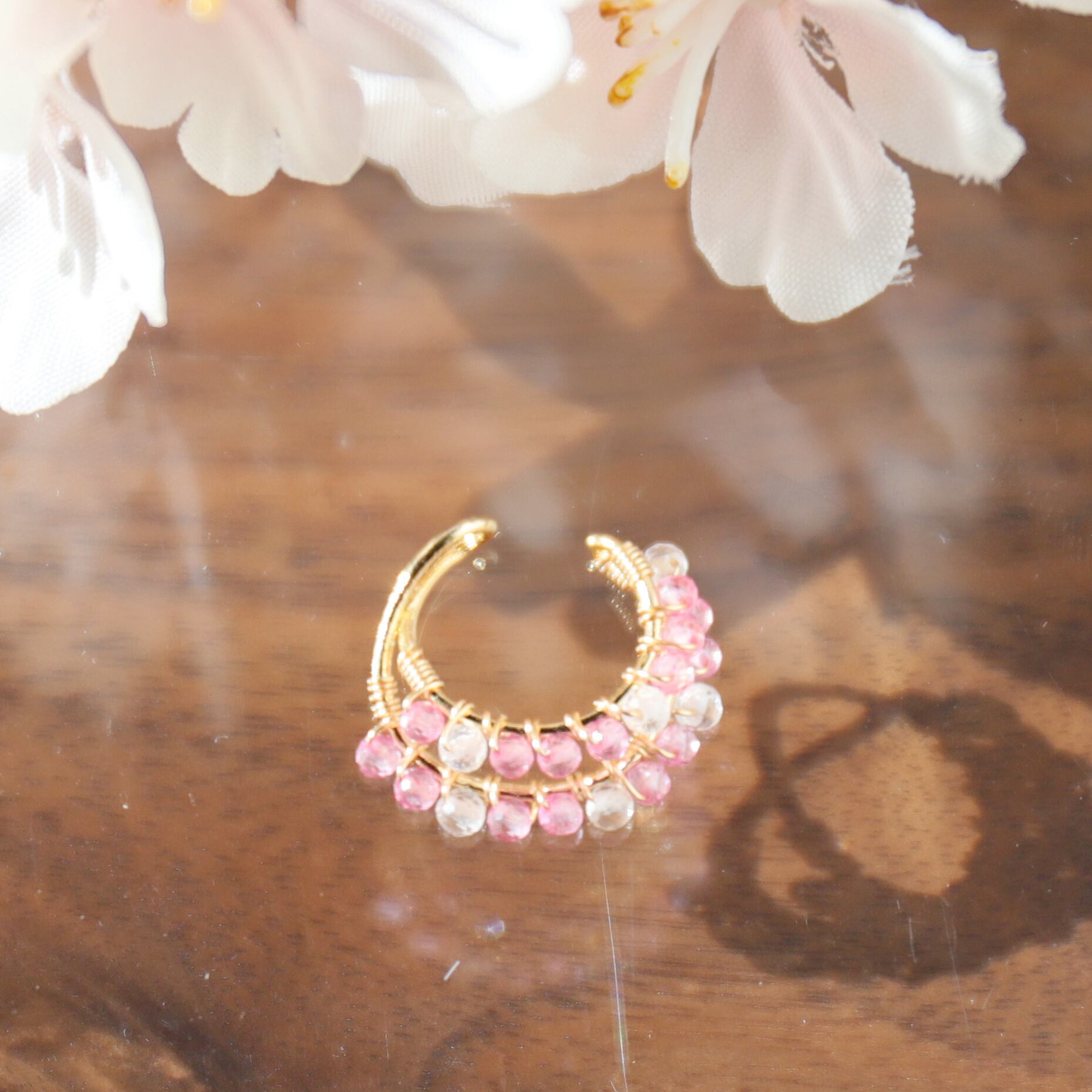 ピンクトパーズとクォーツのサクラ二連イヤーカフ(片耳用) #1301