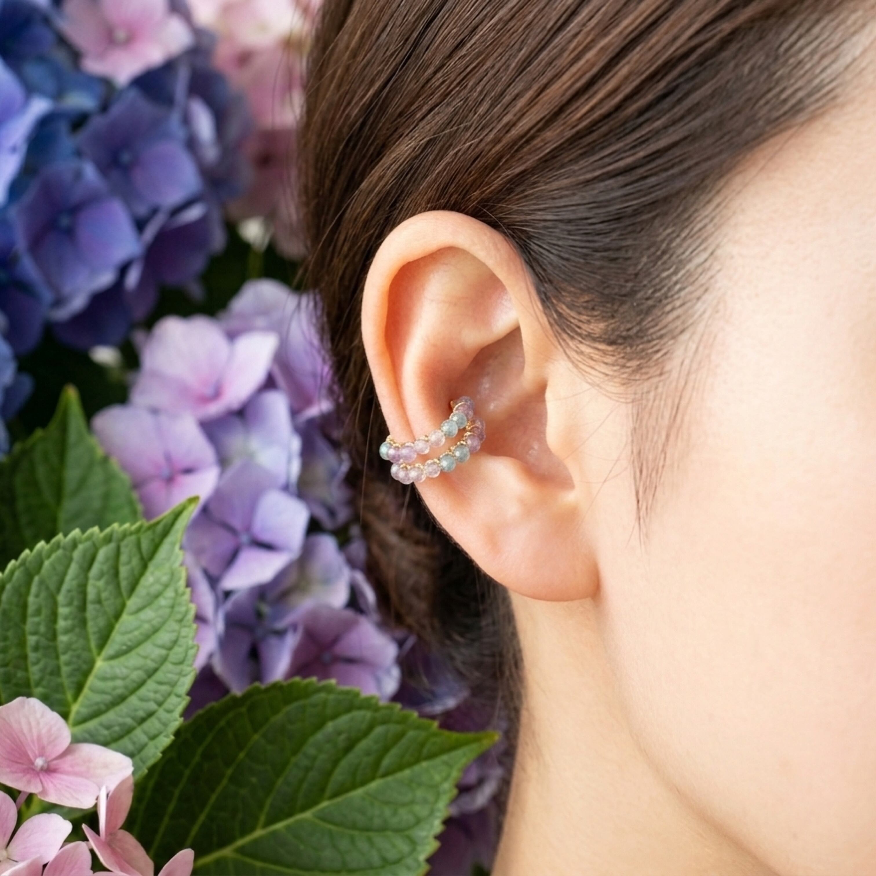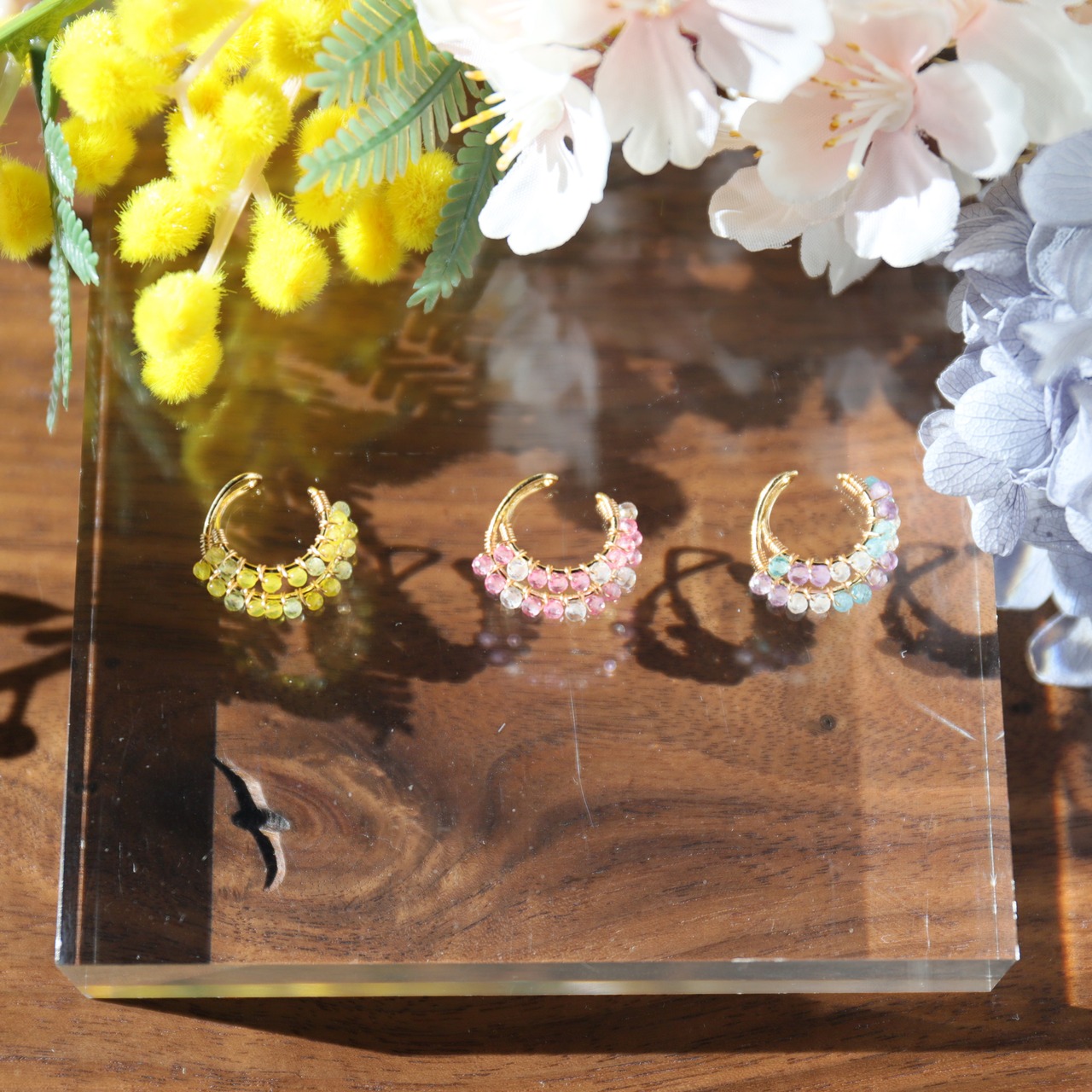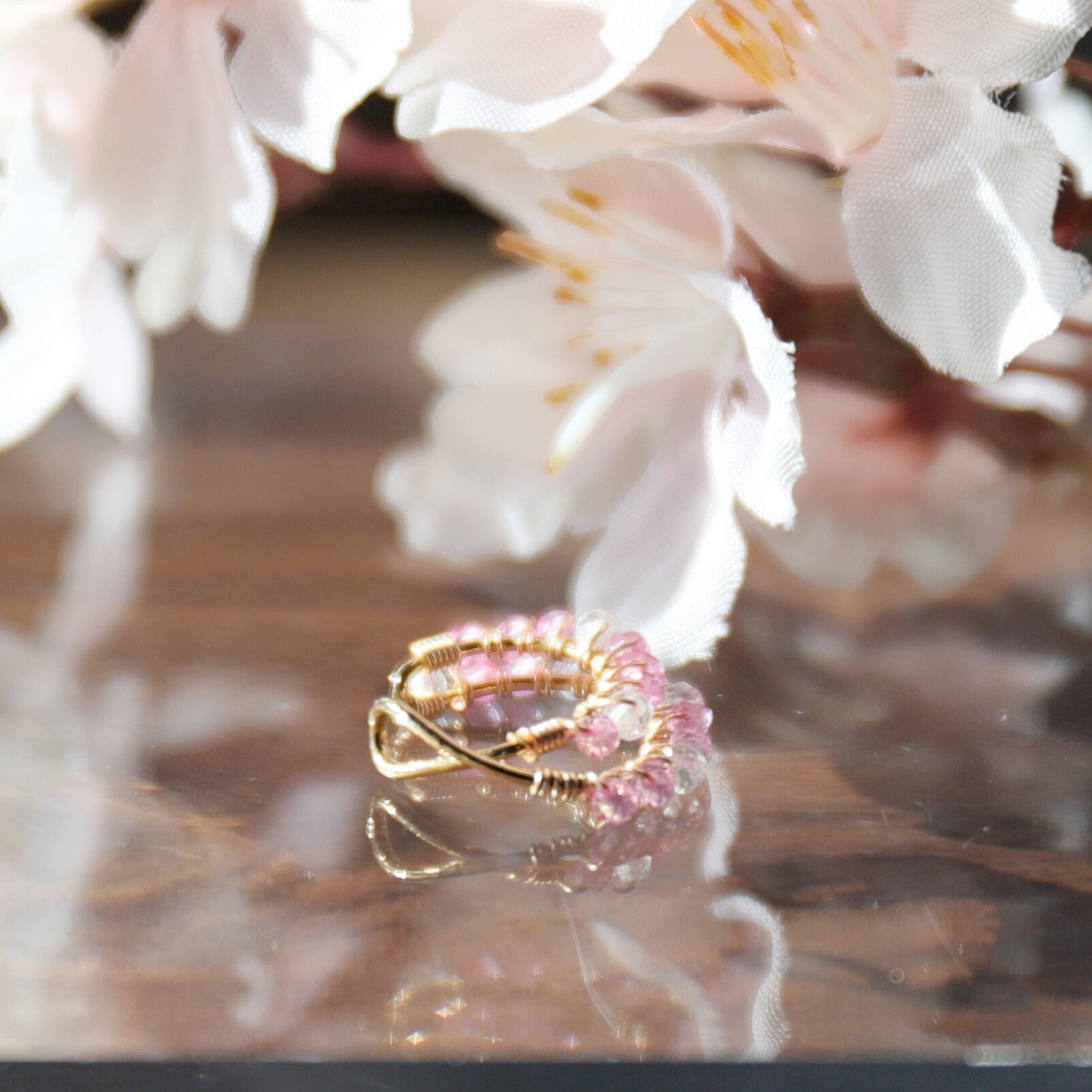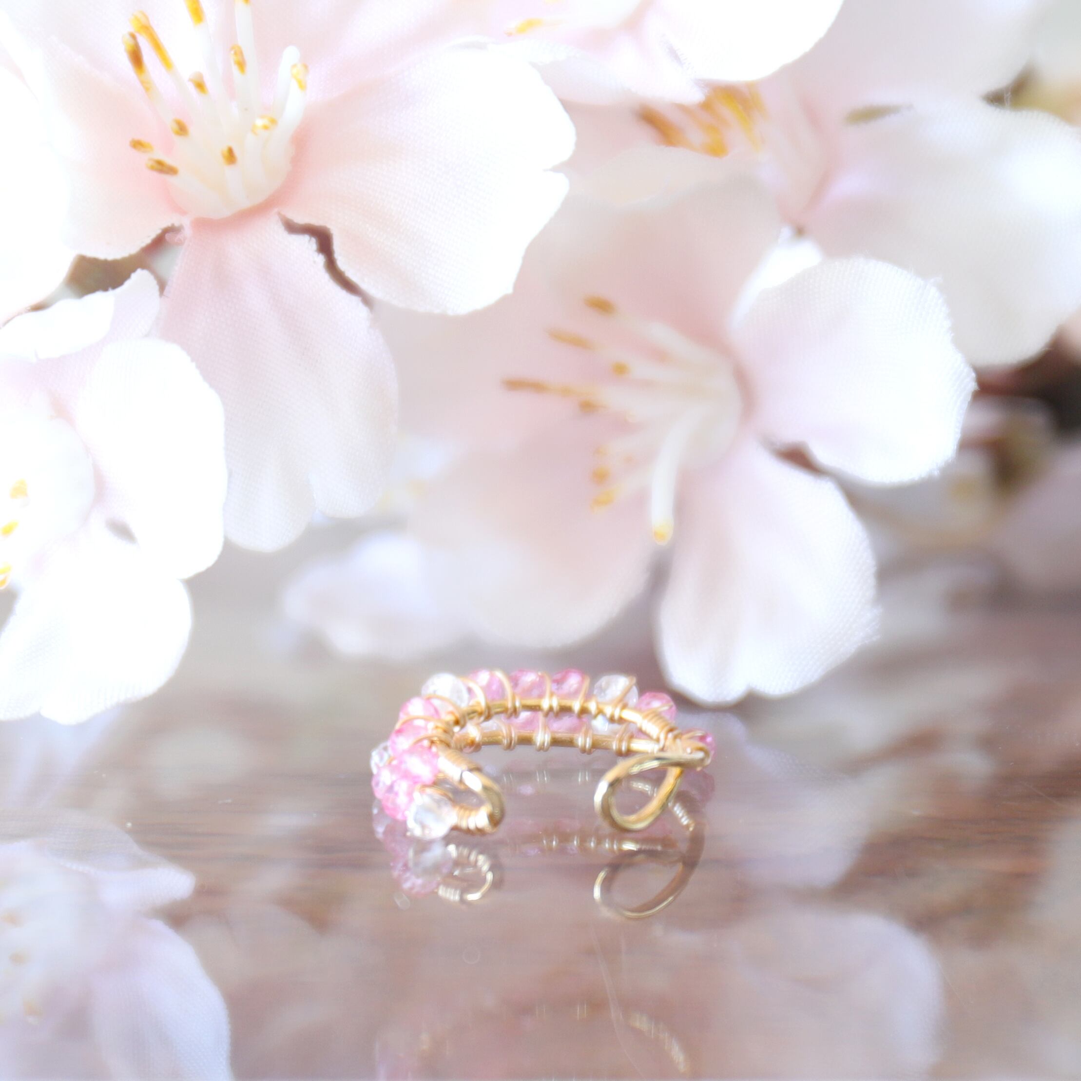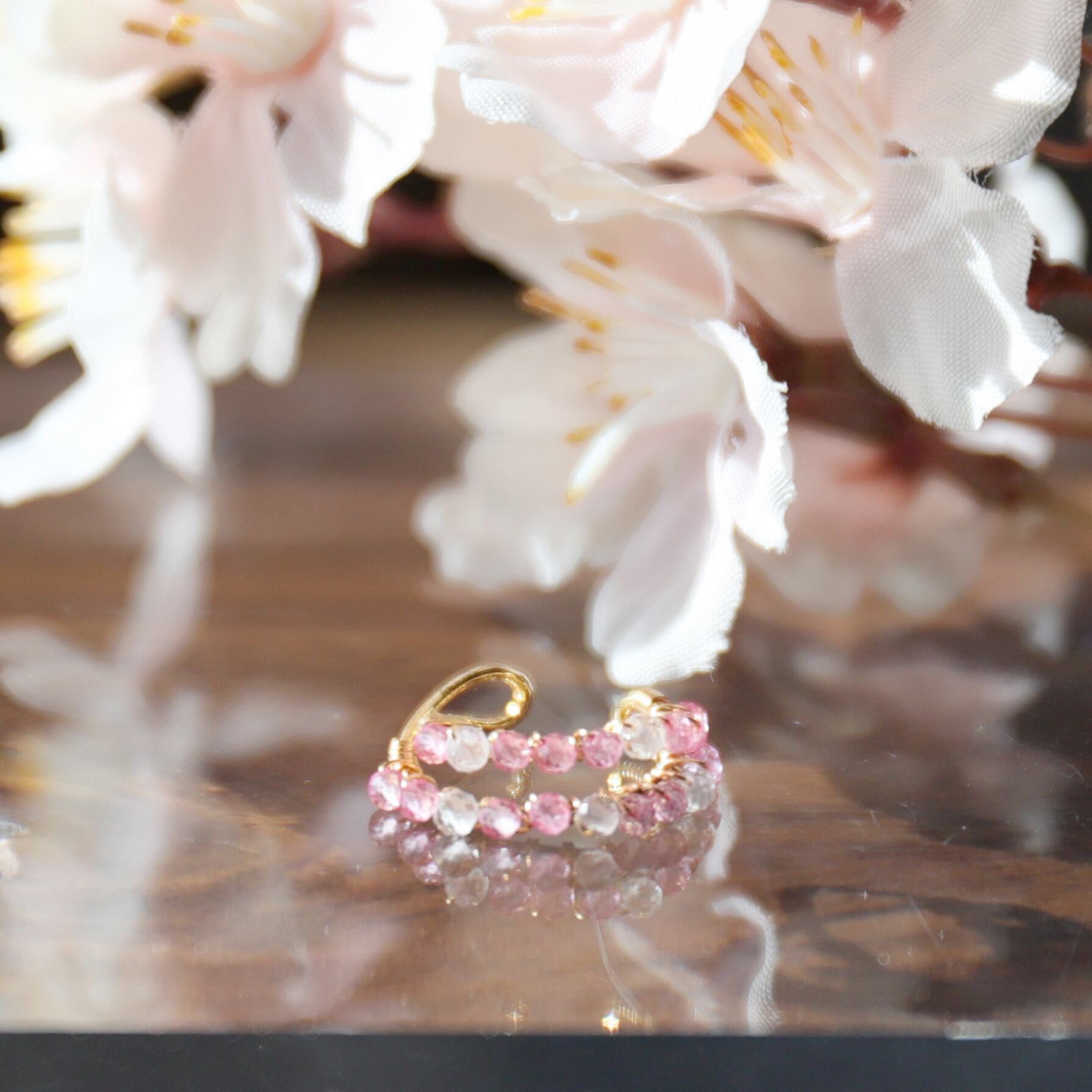 ピンクトパーズとクォーツのサクラ二連イヤーカフ(片耳用) #1301