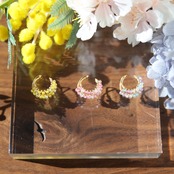 透明感のあるピンクカラーのアクセサリーは肌馴染みがよく