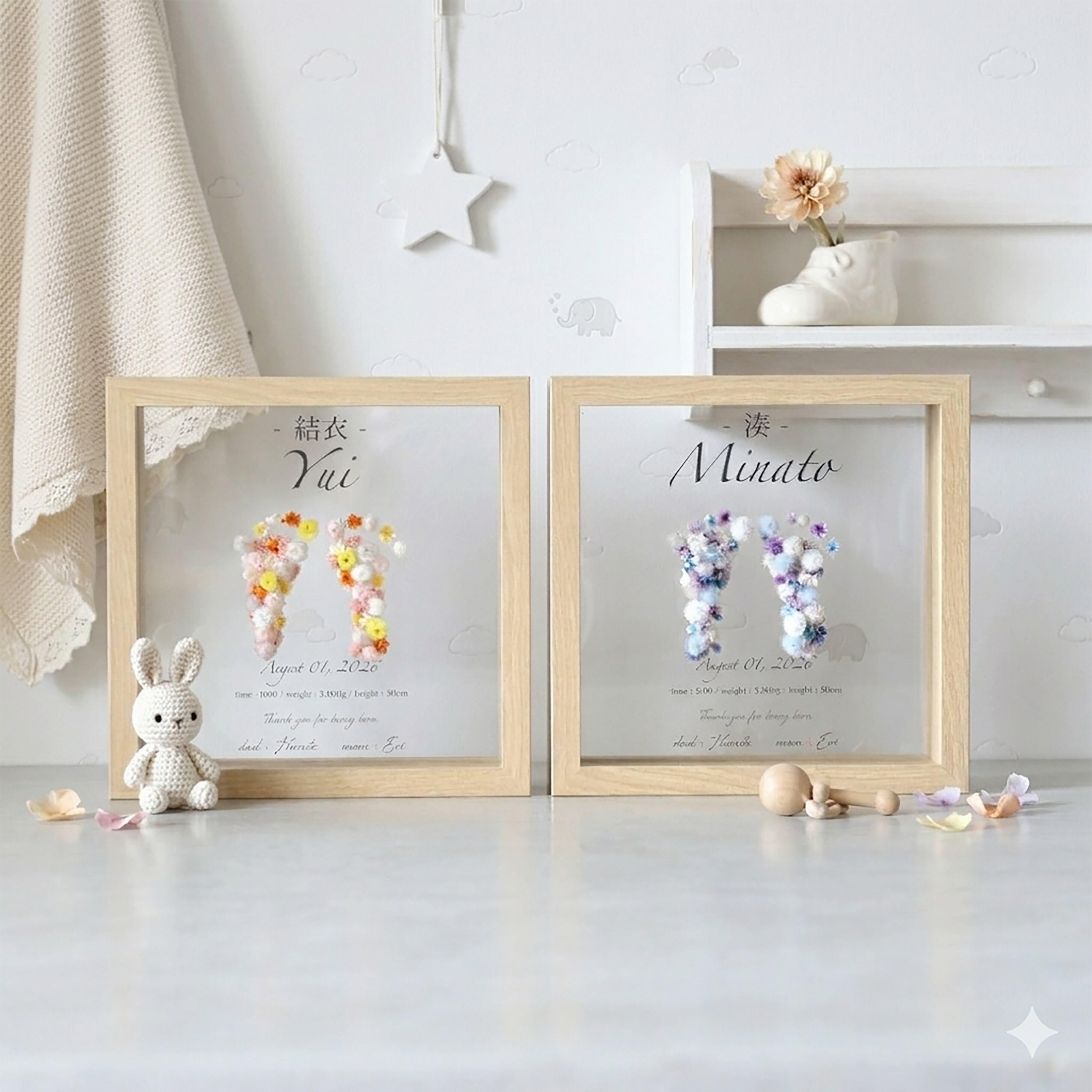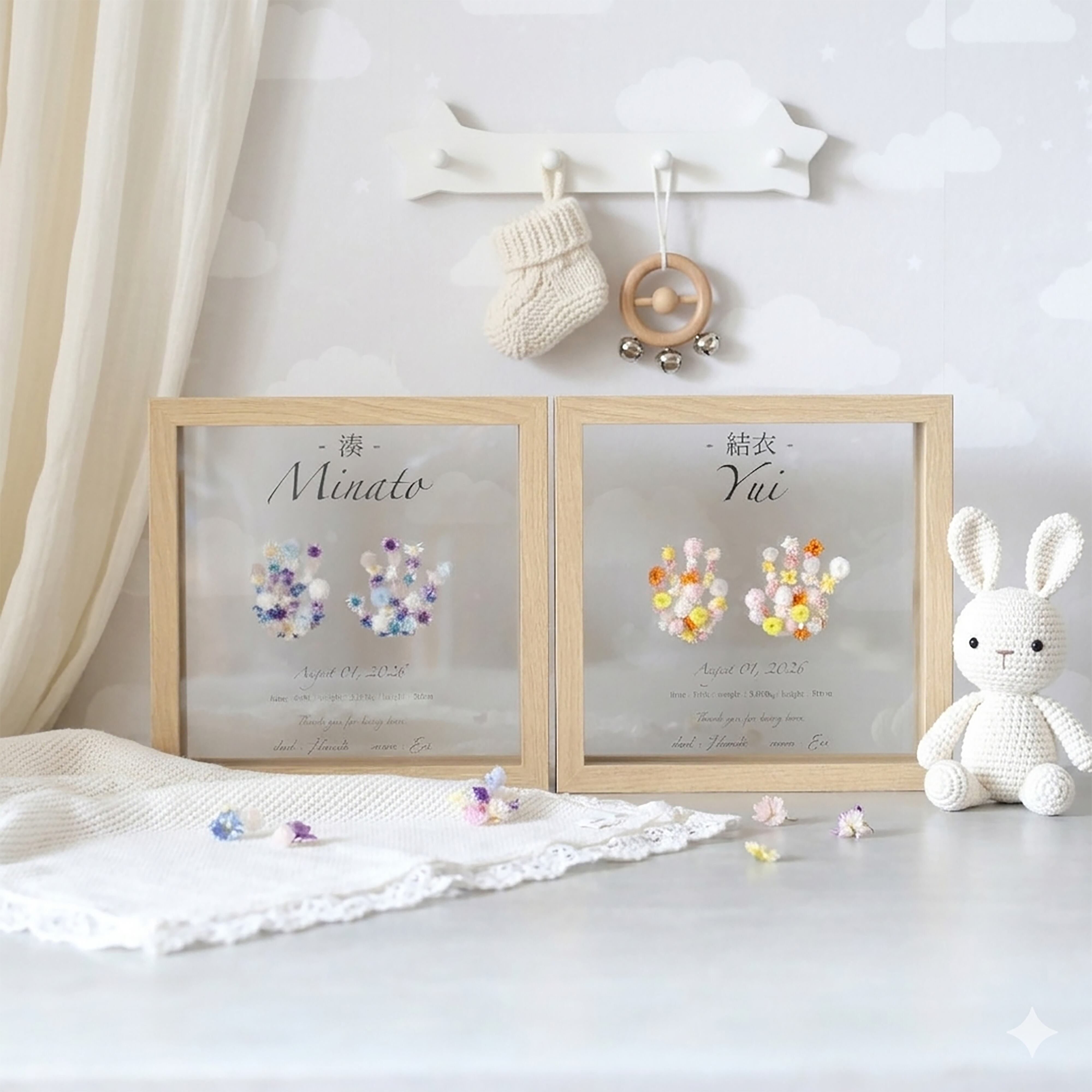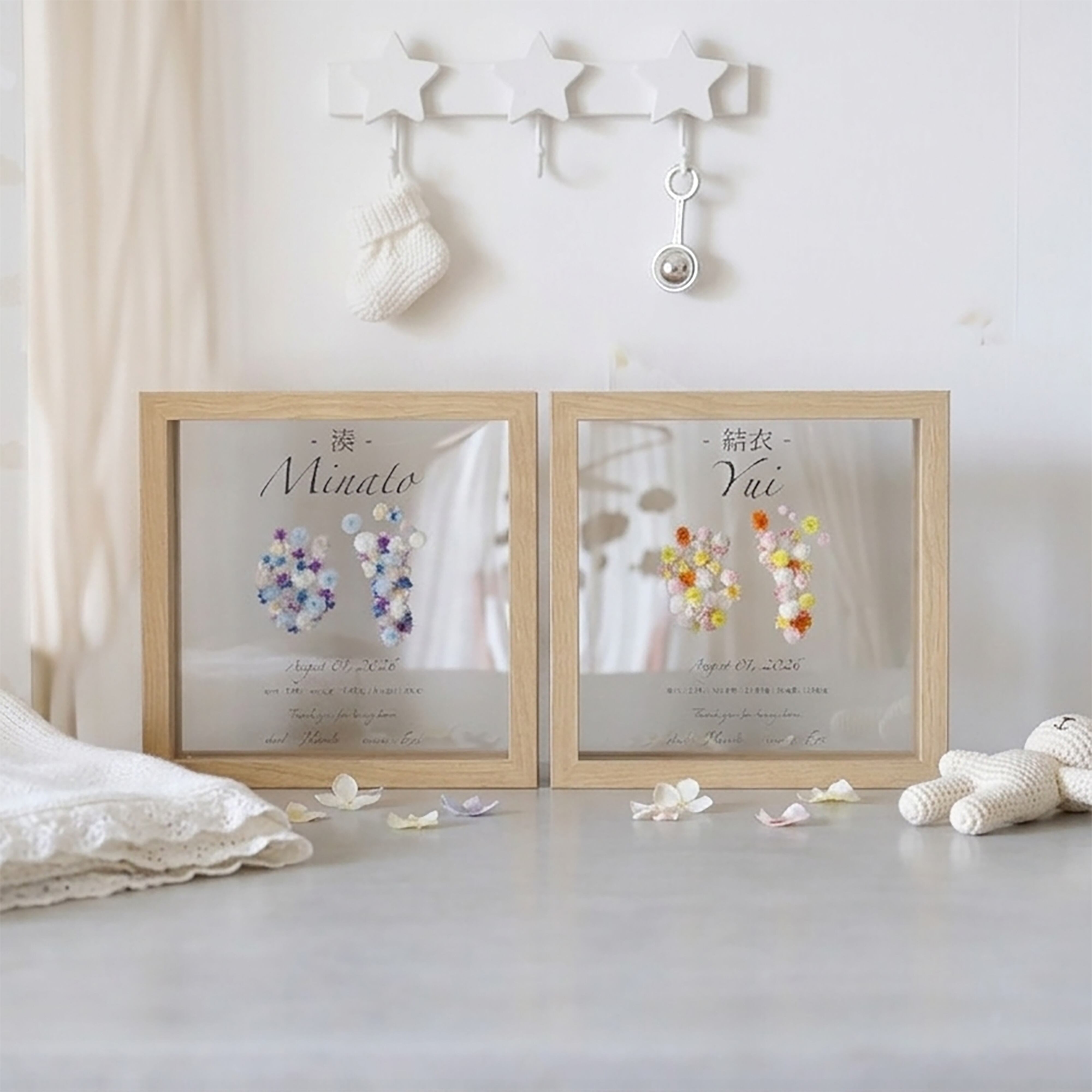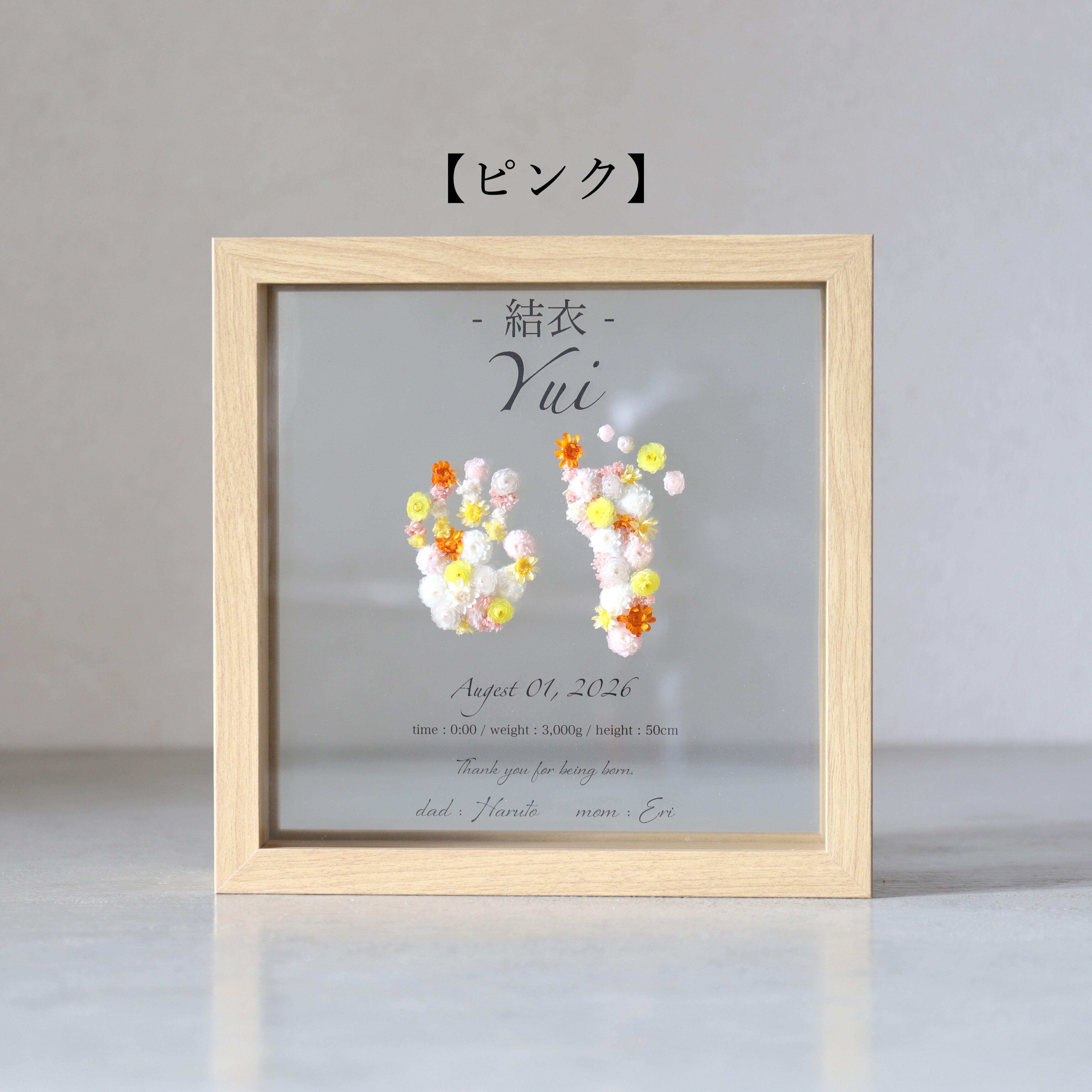 【2色展開】ウッドガラスフレーム 命名書 (片手片足・両手・両足) #1305