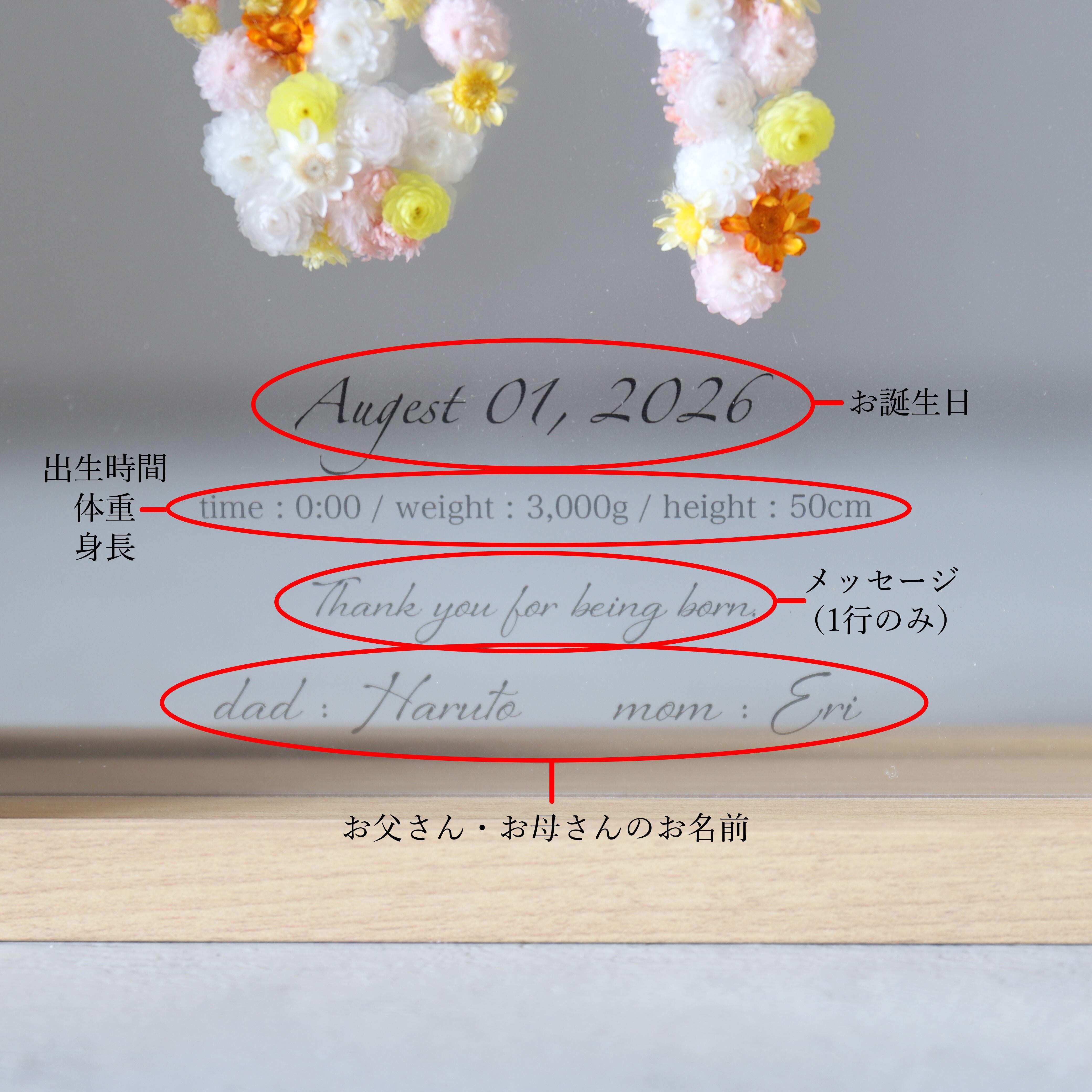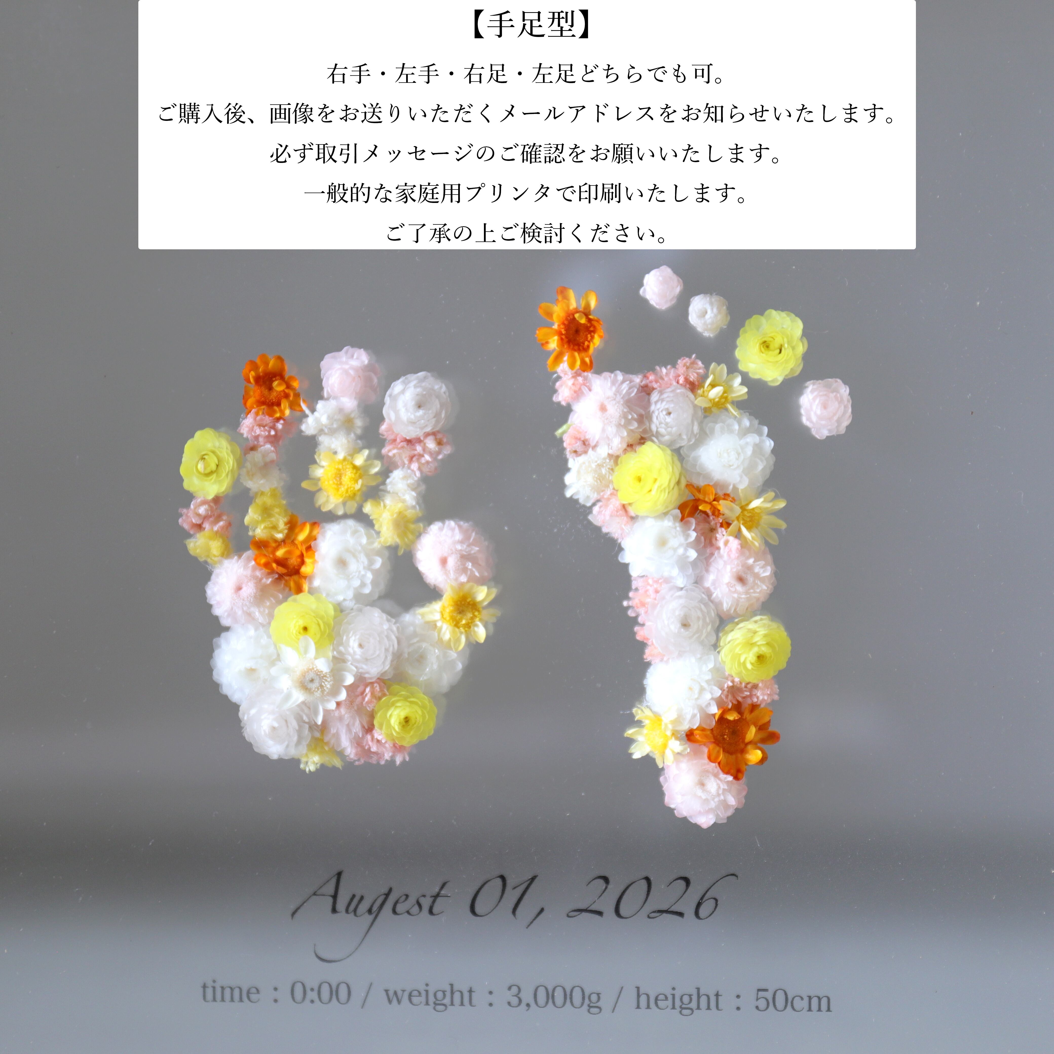 お子さんの手足の大きさによってはお花部分・文字部分の大きさが