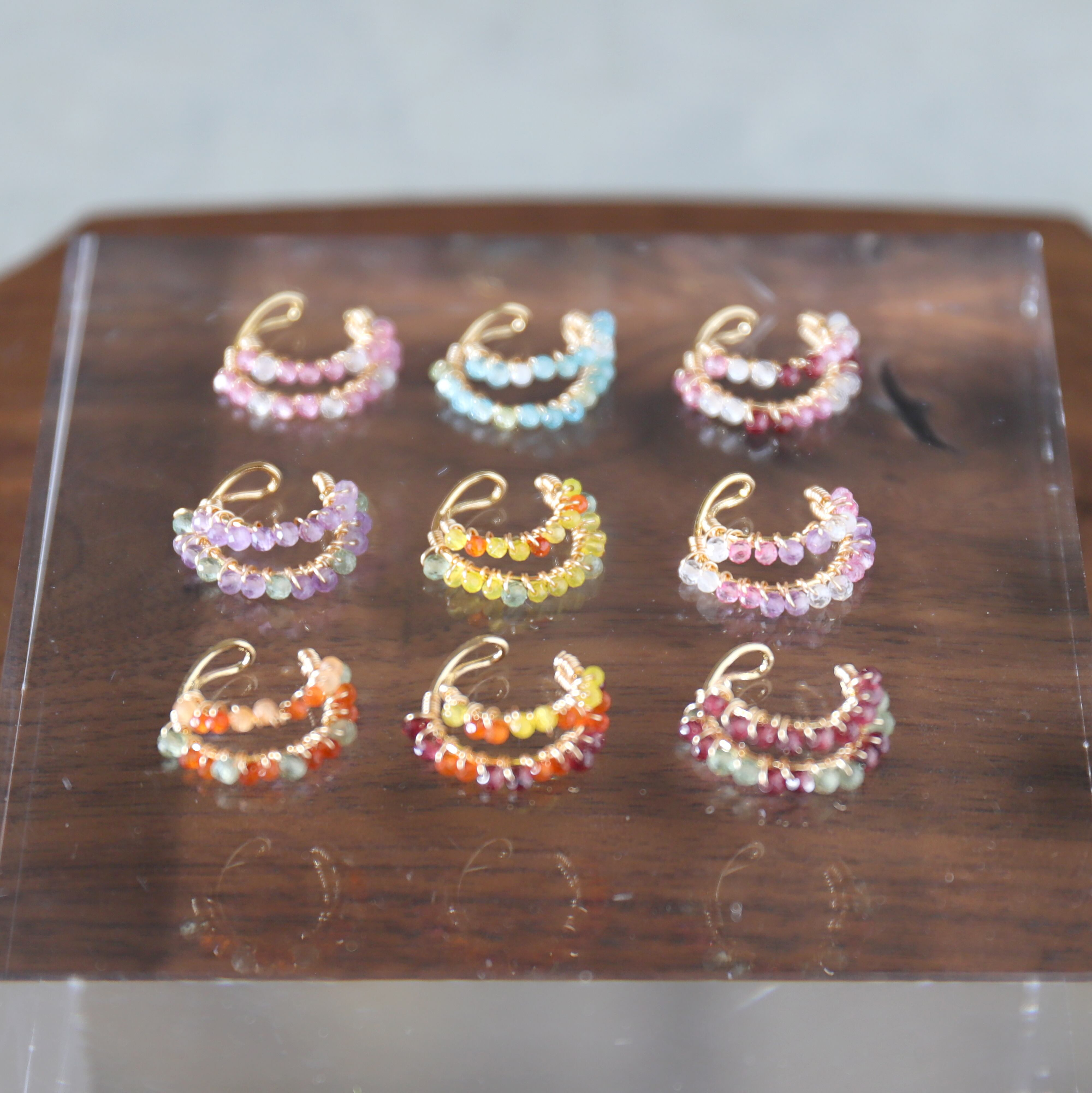天然石のアパタイト、クリスタル、ペリドットで表現したイヤカフです。