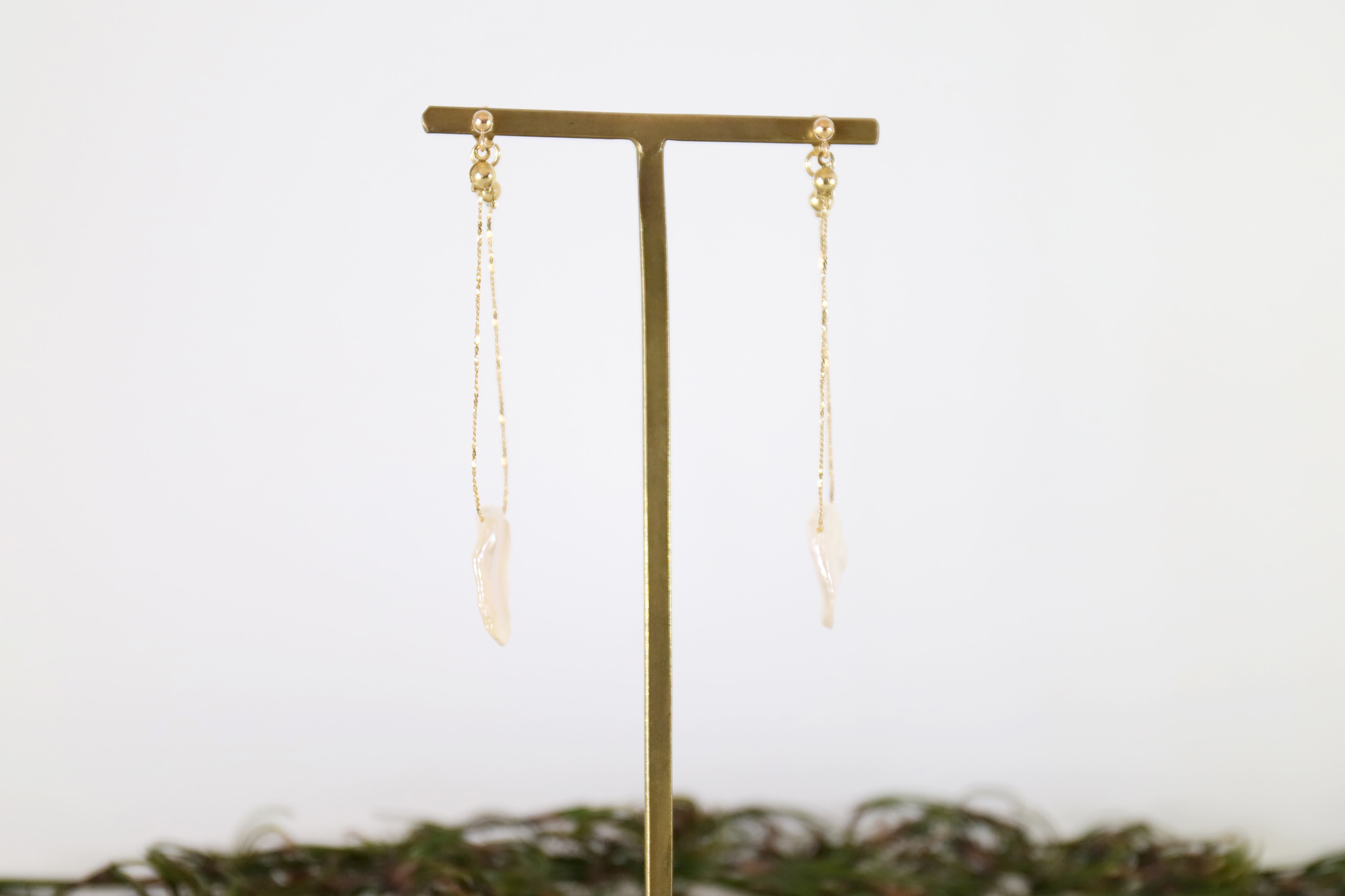 極細のチェーンを合わせたシンプルデザインのアクセサリーです。