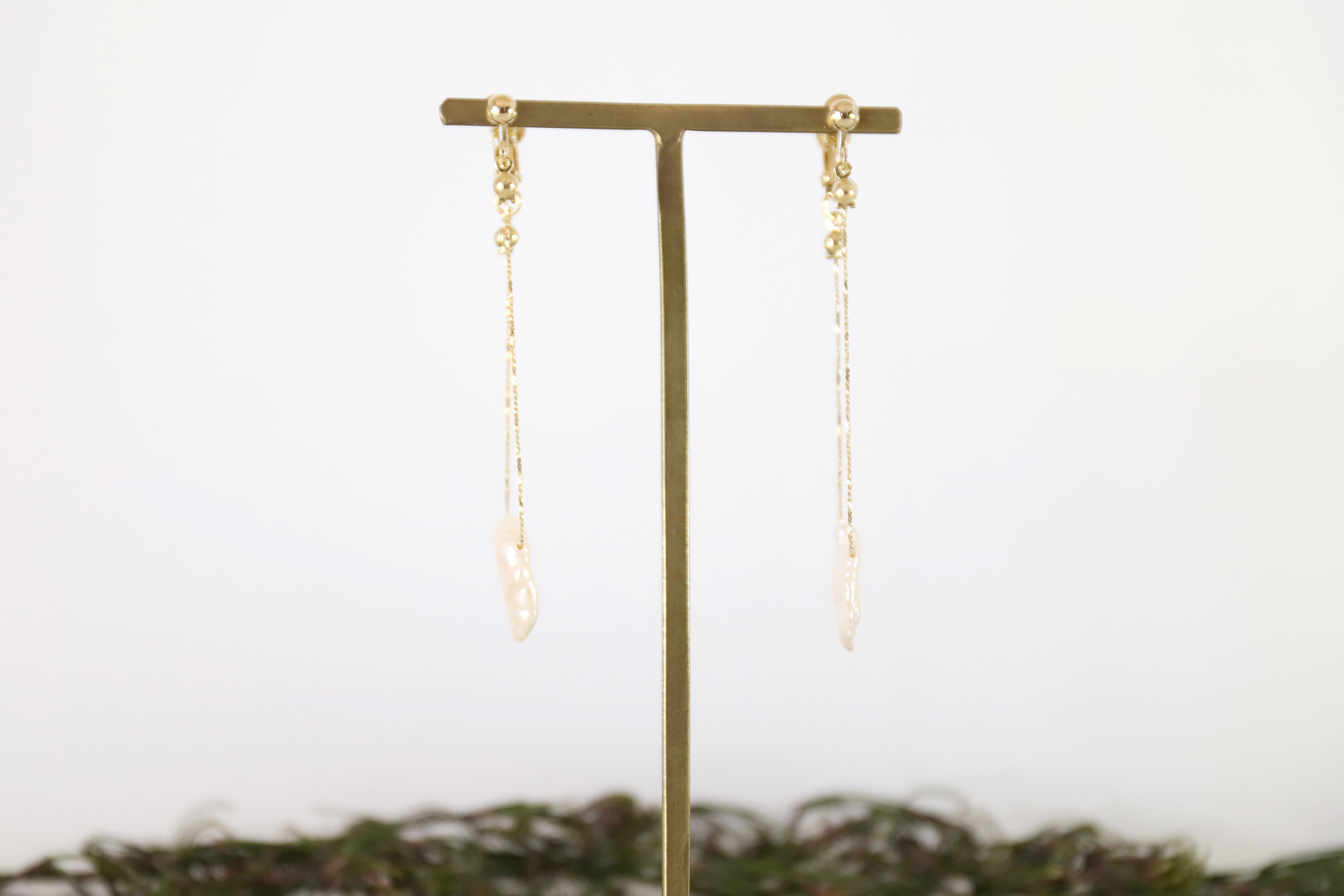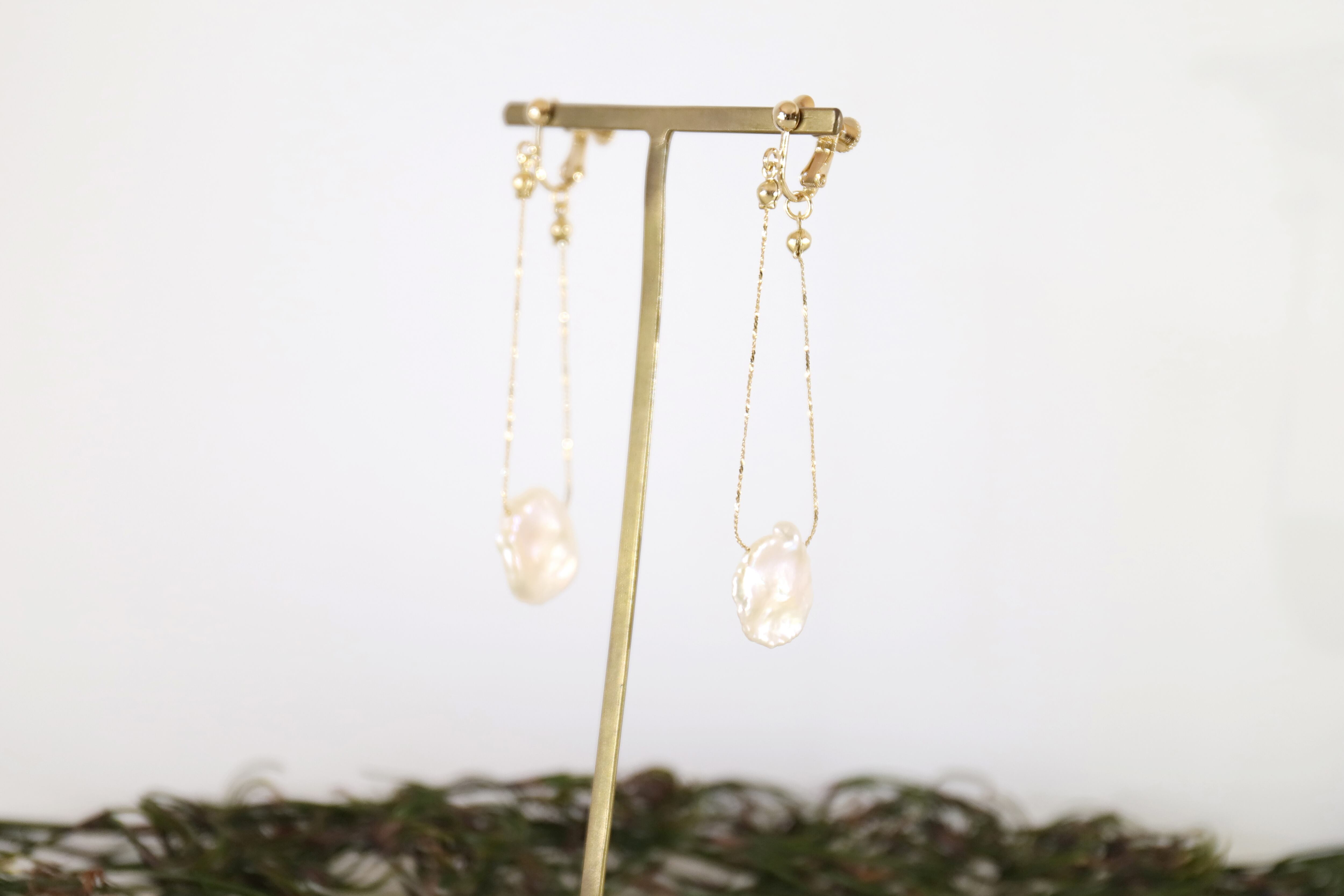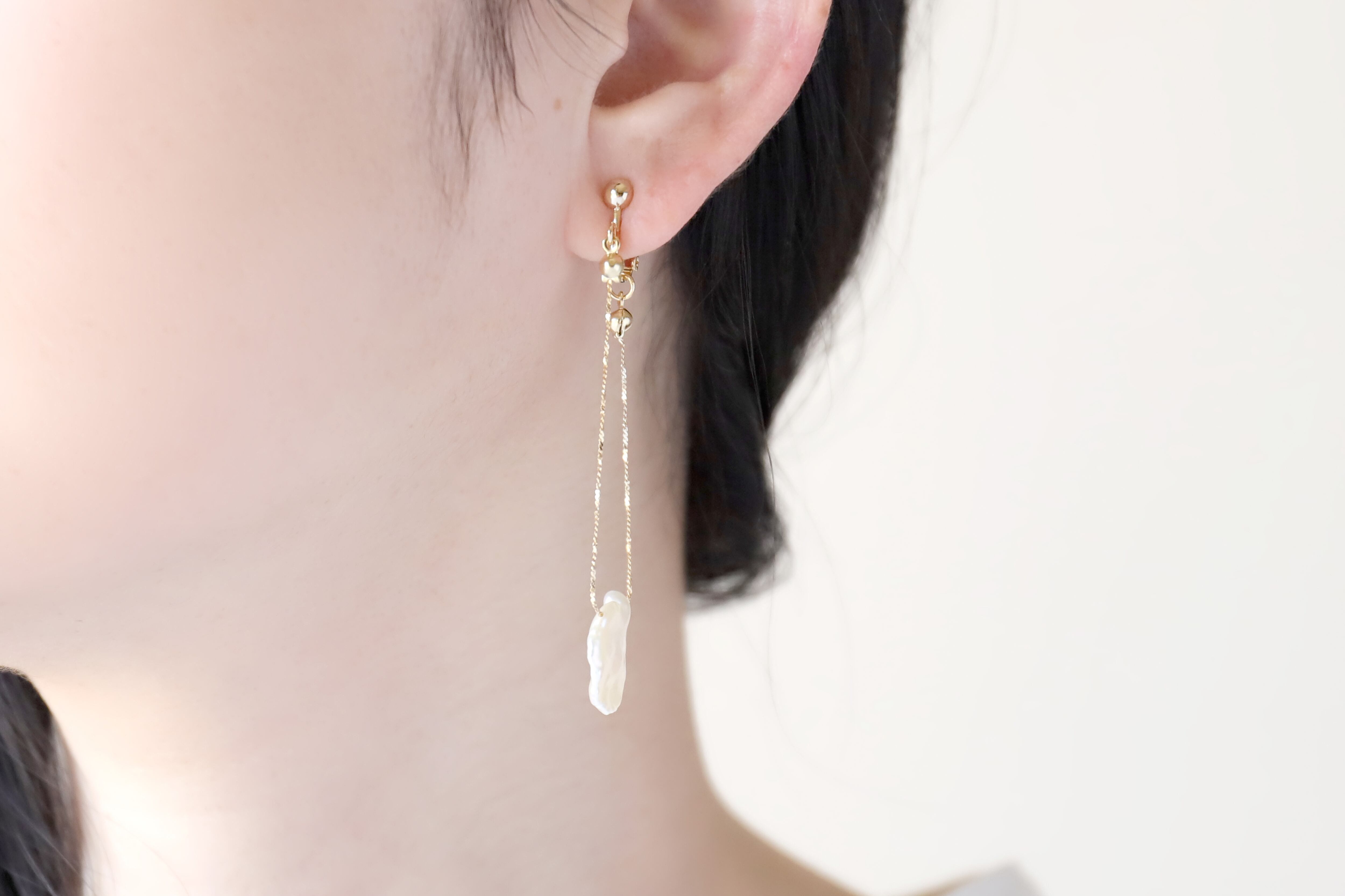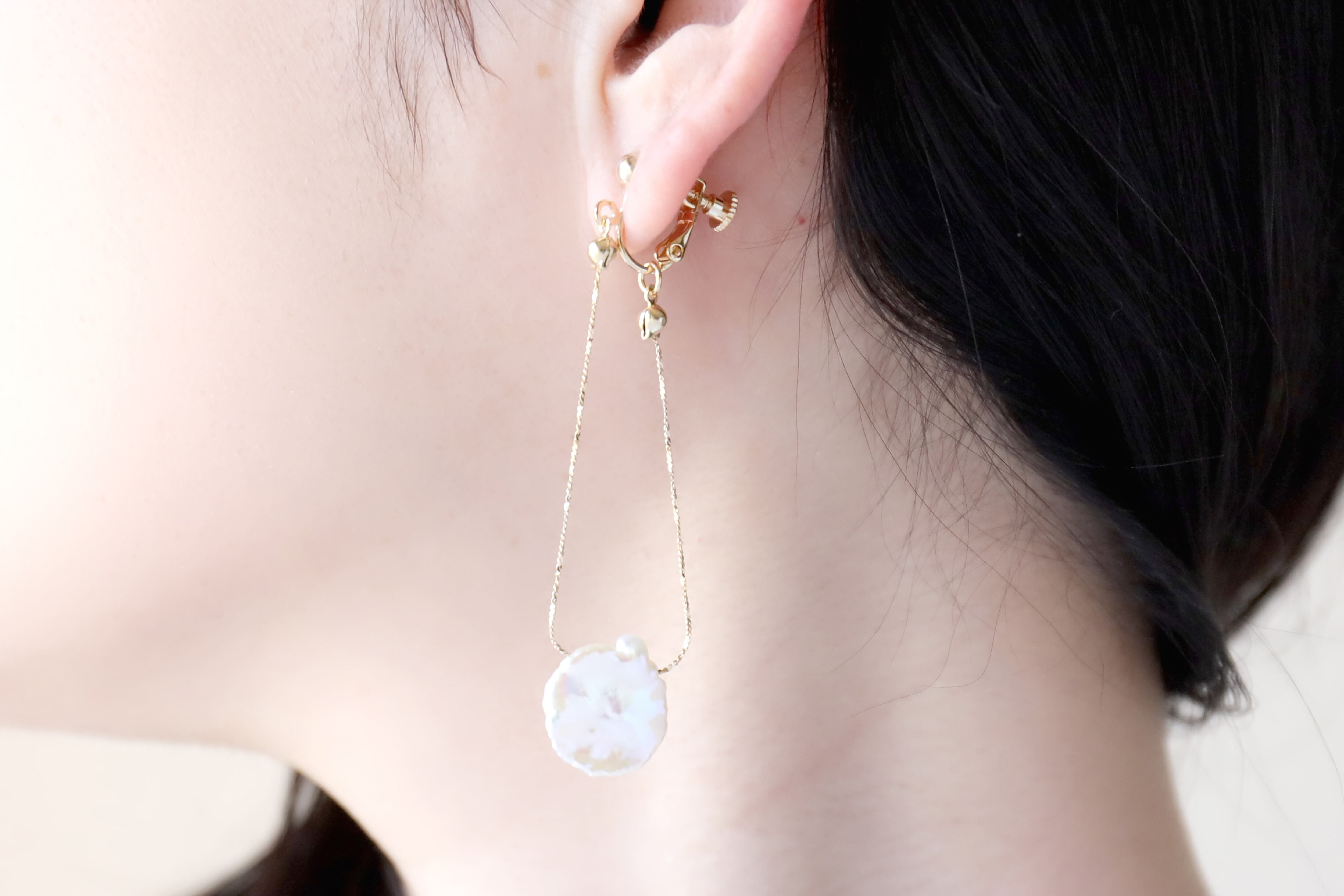 極細のチェーンを合わせたシンプルデザインのアクセサリーです。