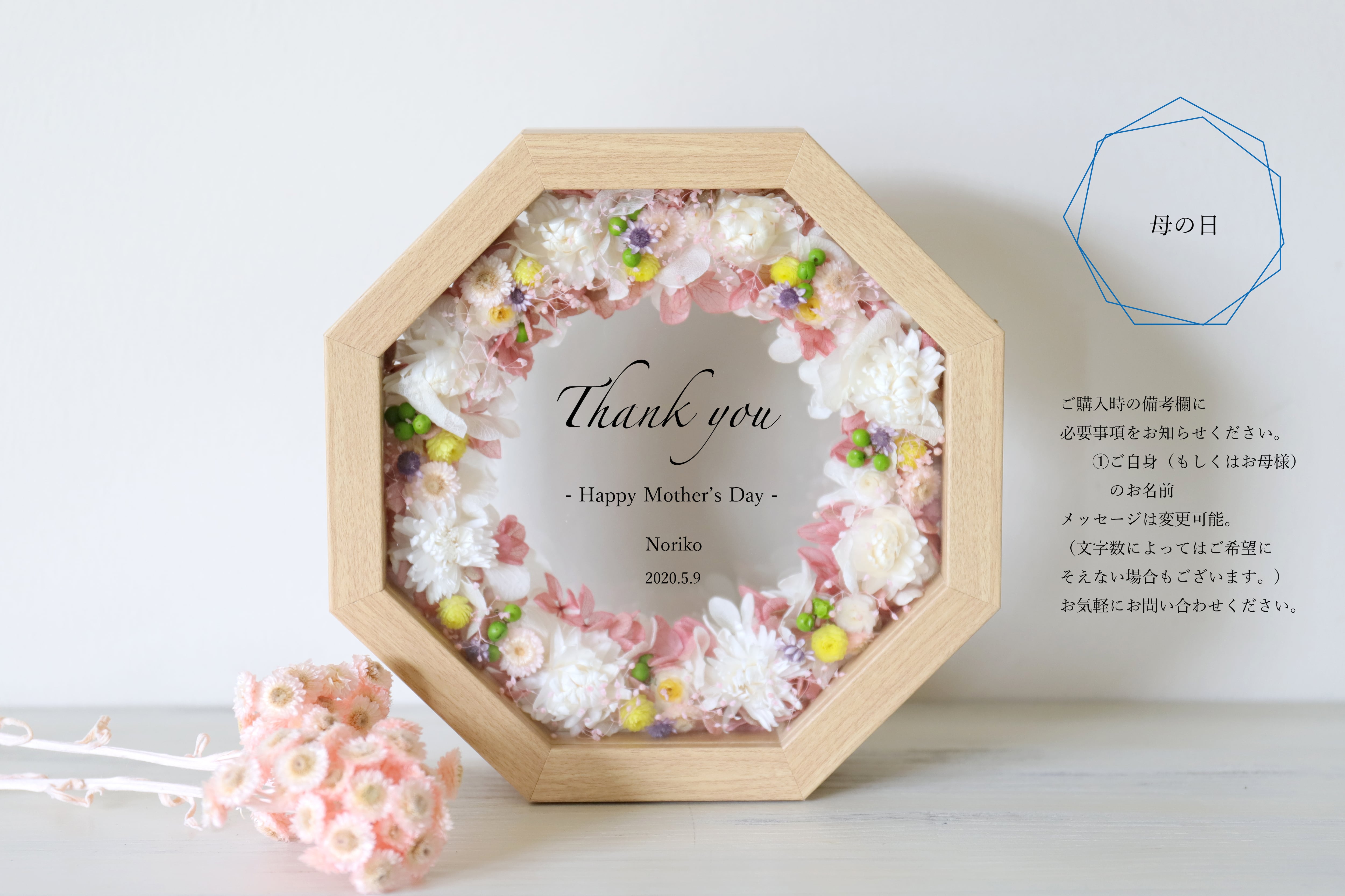 【母の日・両親贈呈品・結婚祝い・子育て感謝状・開店祝い・命名ボード】フラワーレターガラスフレーム(eight)ピンク #919