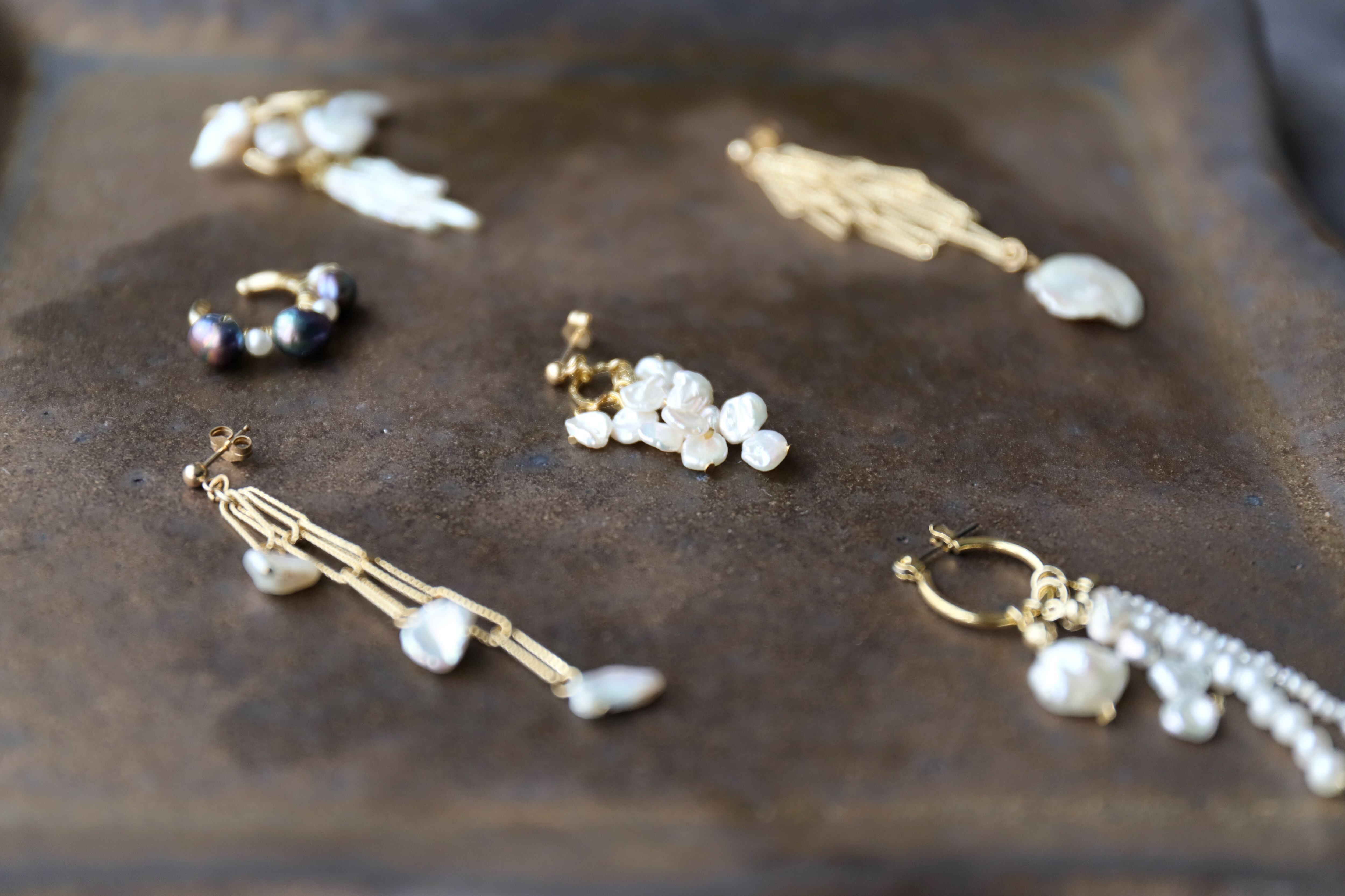 2つ目は約5mmのクレオ穴の淡水パールを5粒。