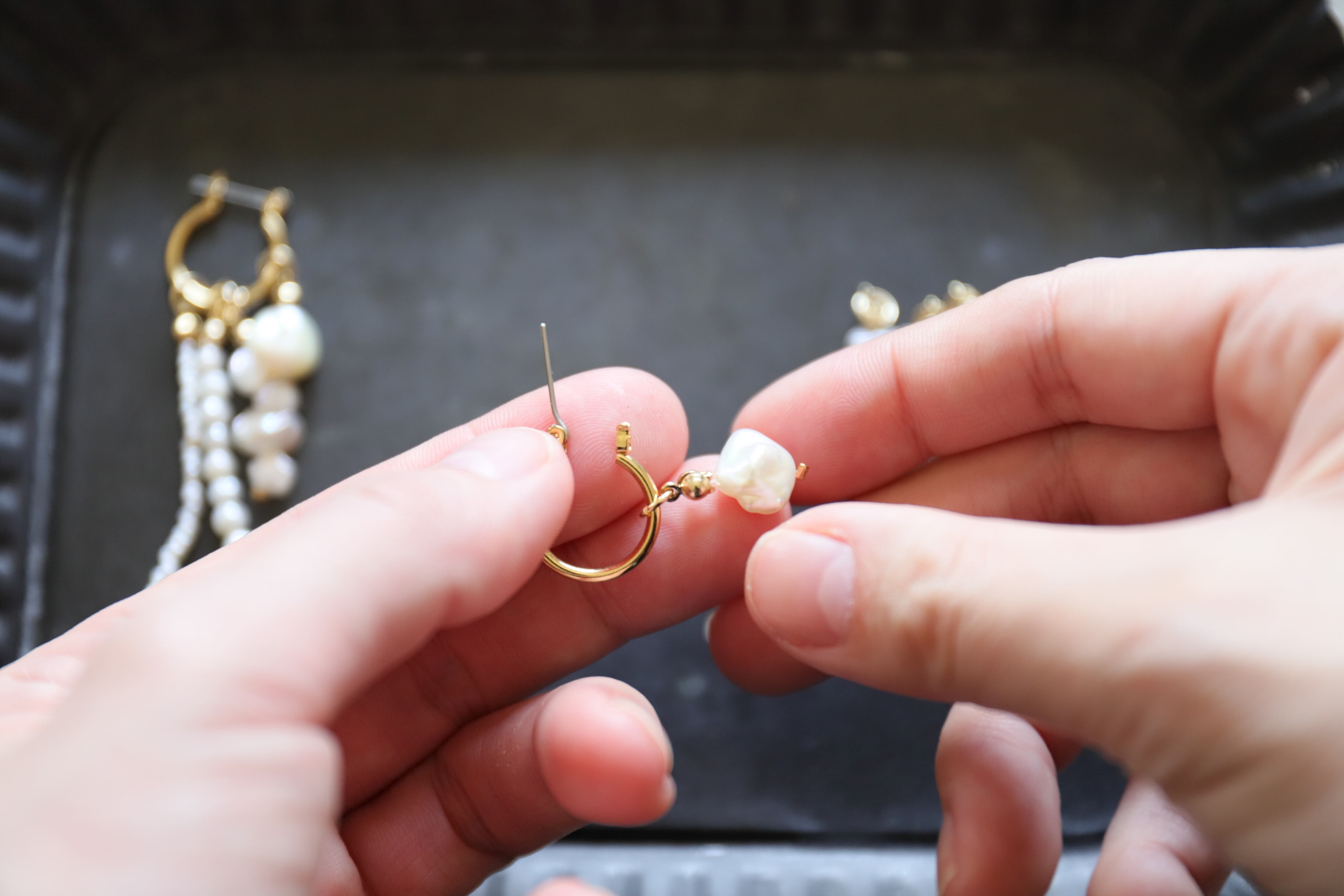 お仕事の日のシンプルアレンジ:大きな1粒パールだけ!