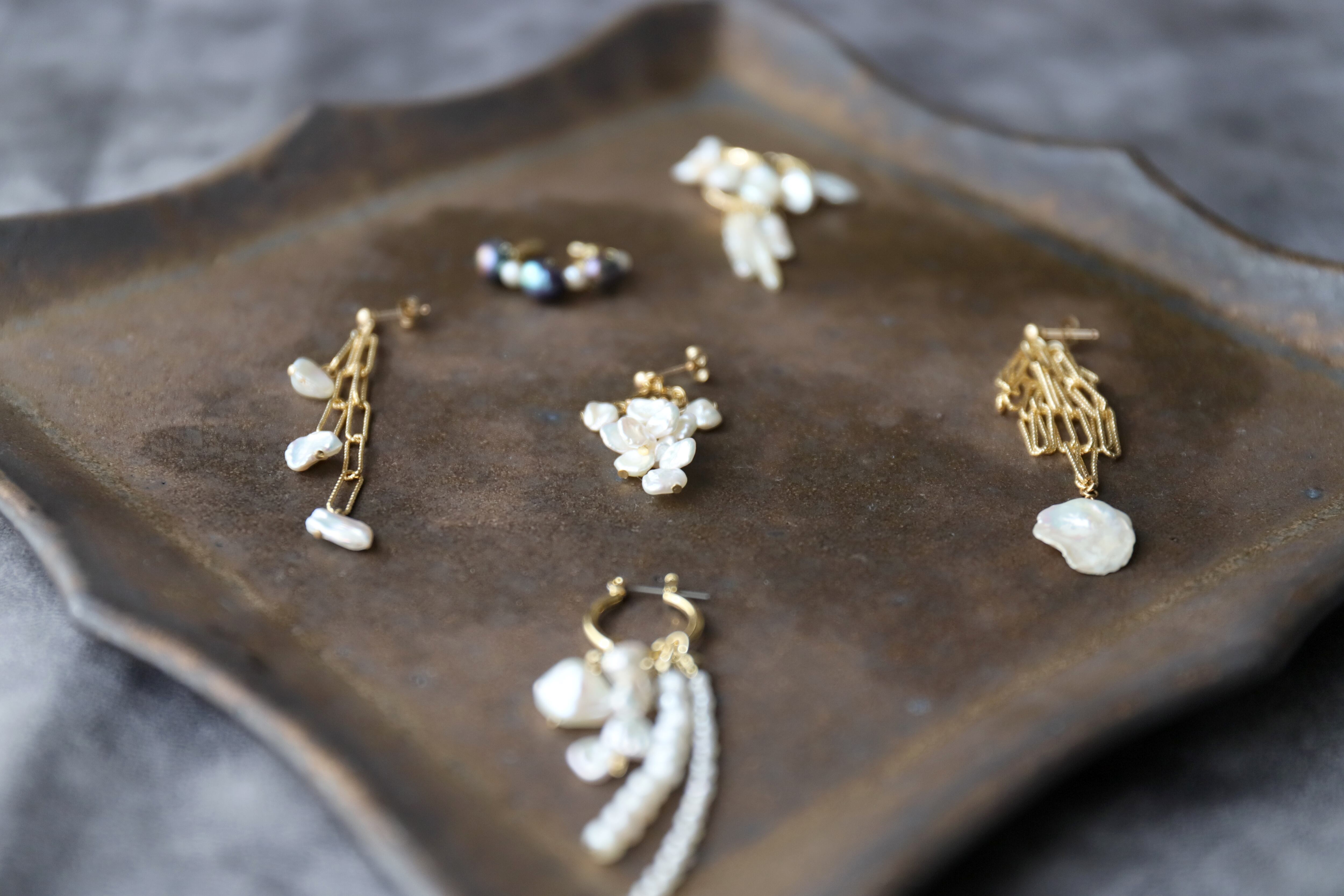 3つ目は約3mmのポテト型の淡水パールを10粒。