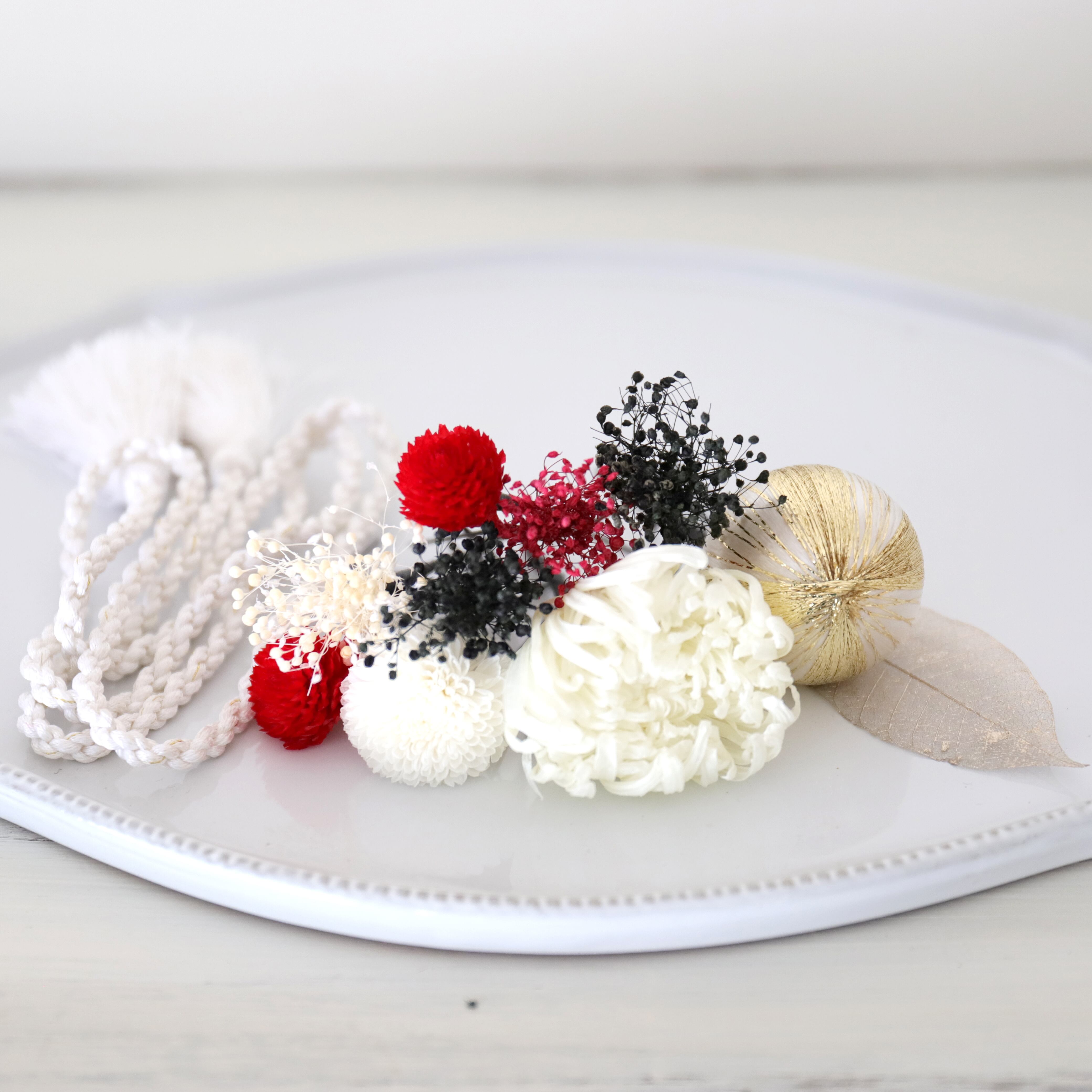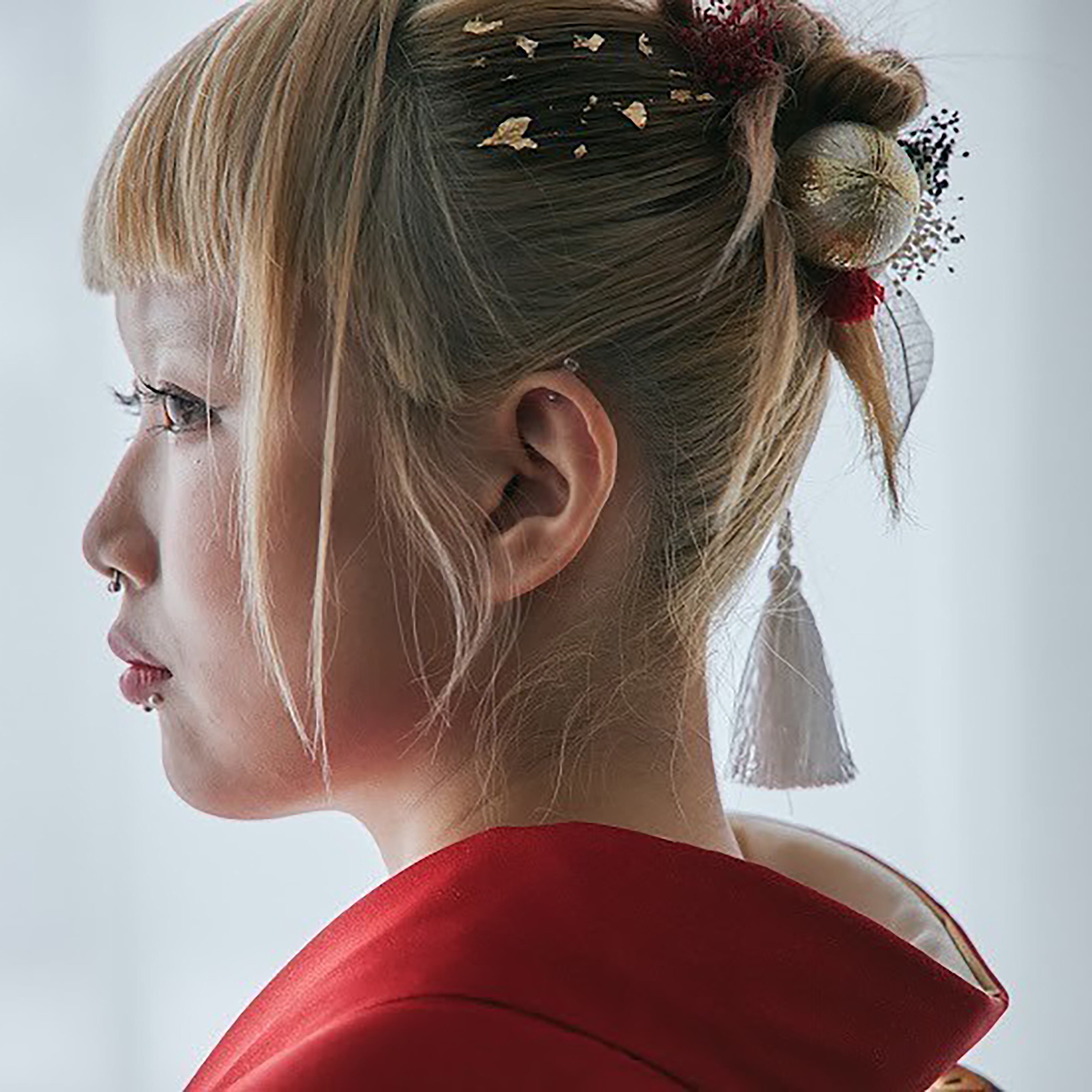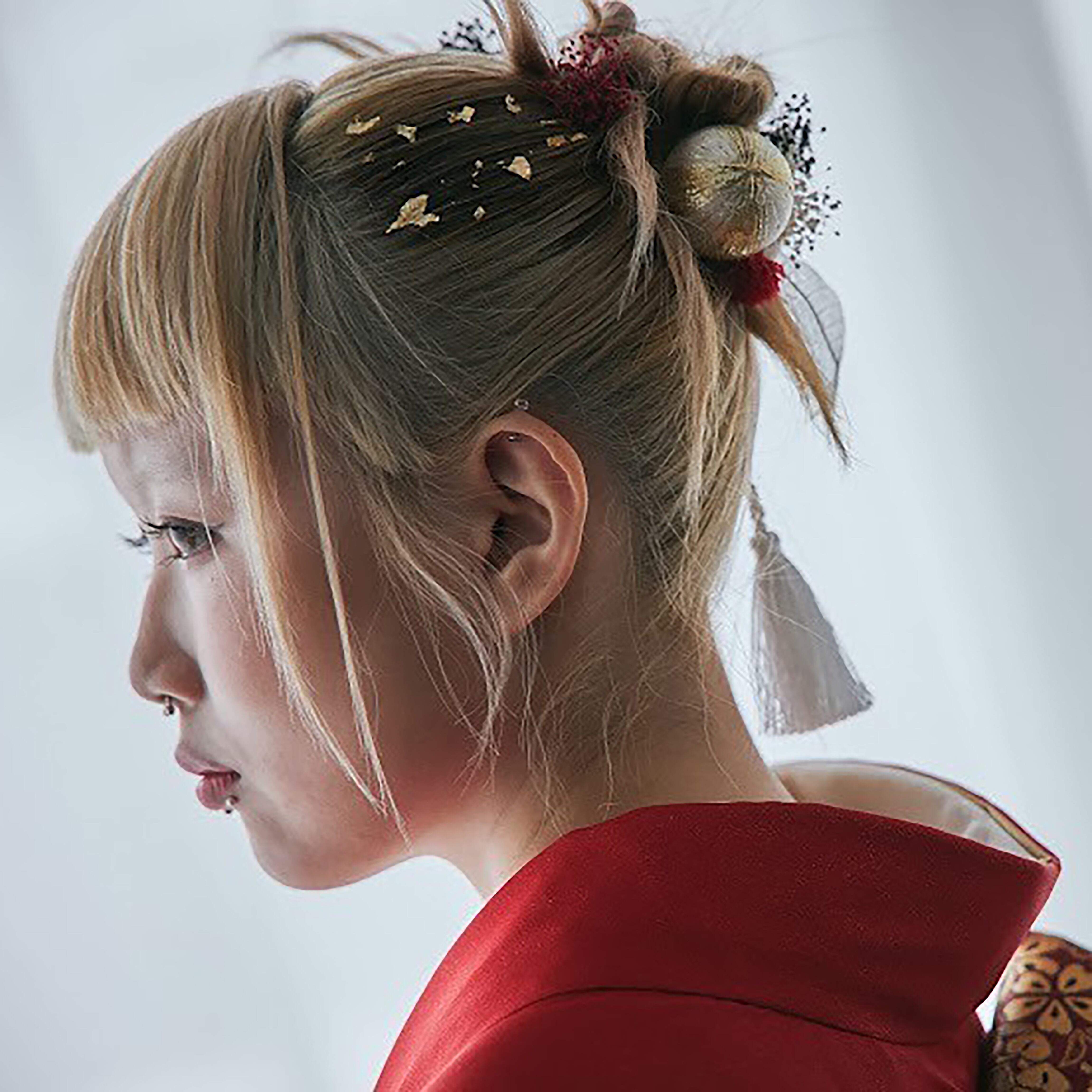 白、赤、黒系のお着物や袴に合うようにカラーリングしました。