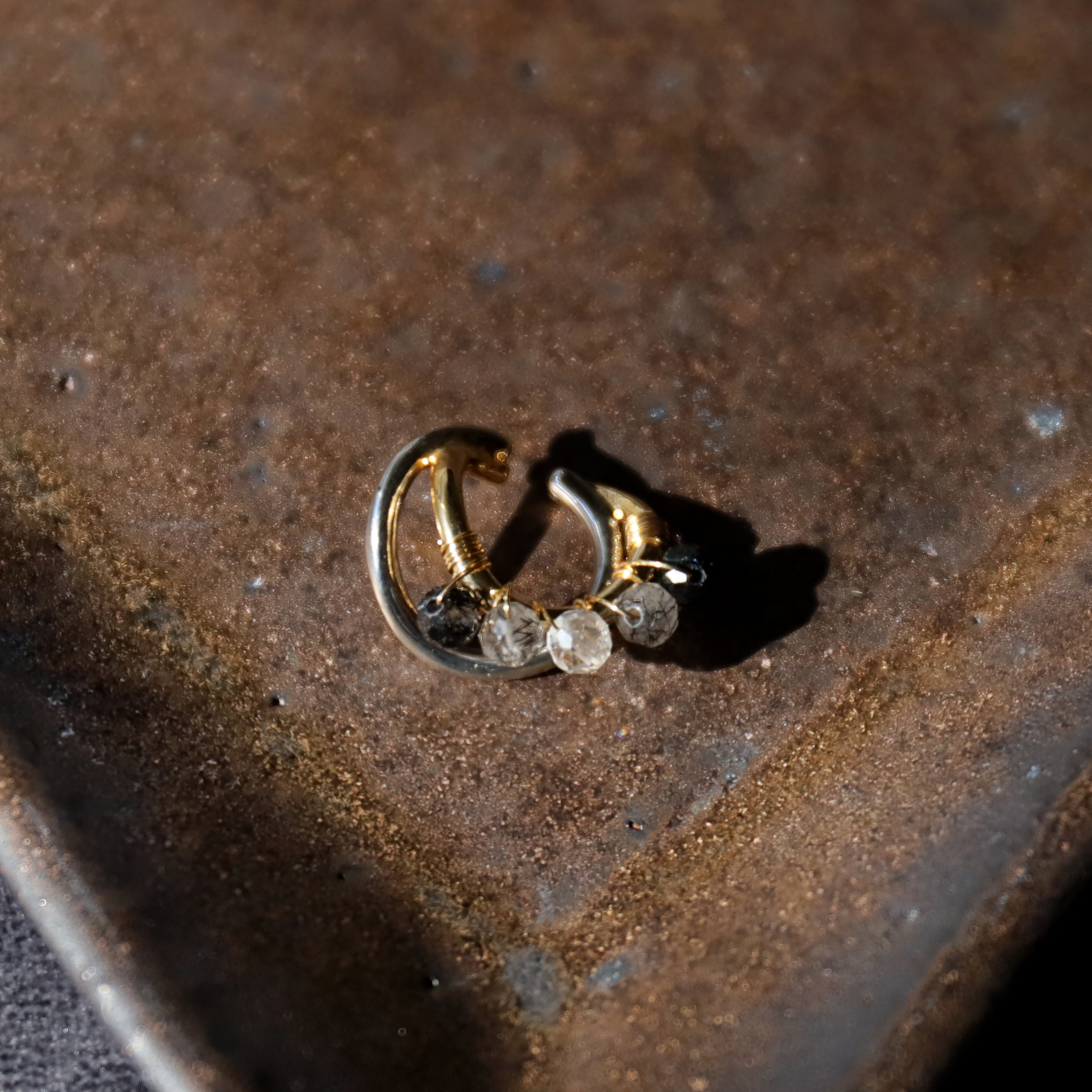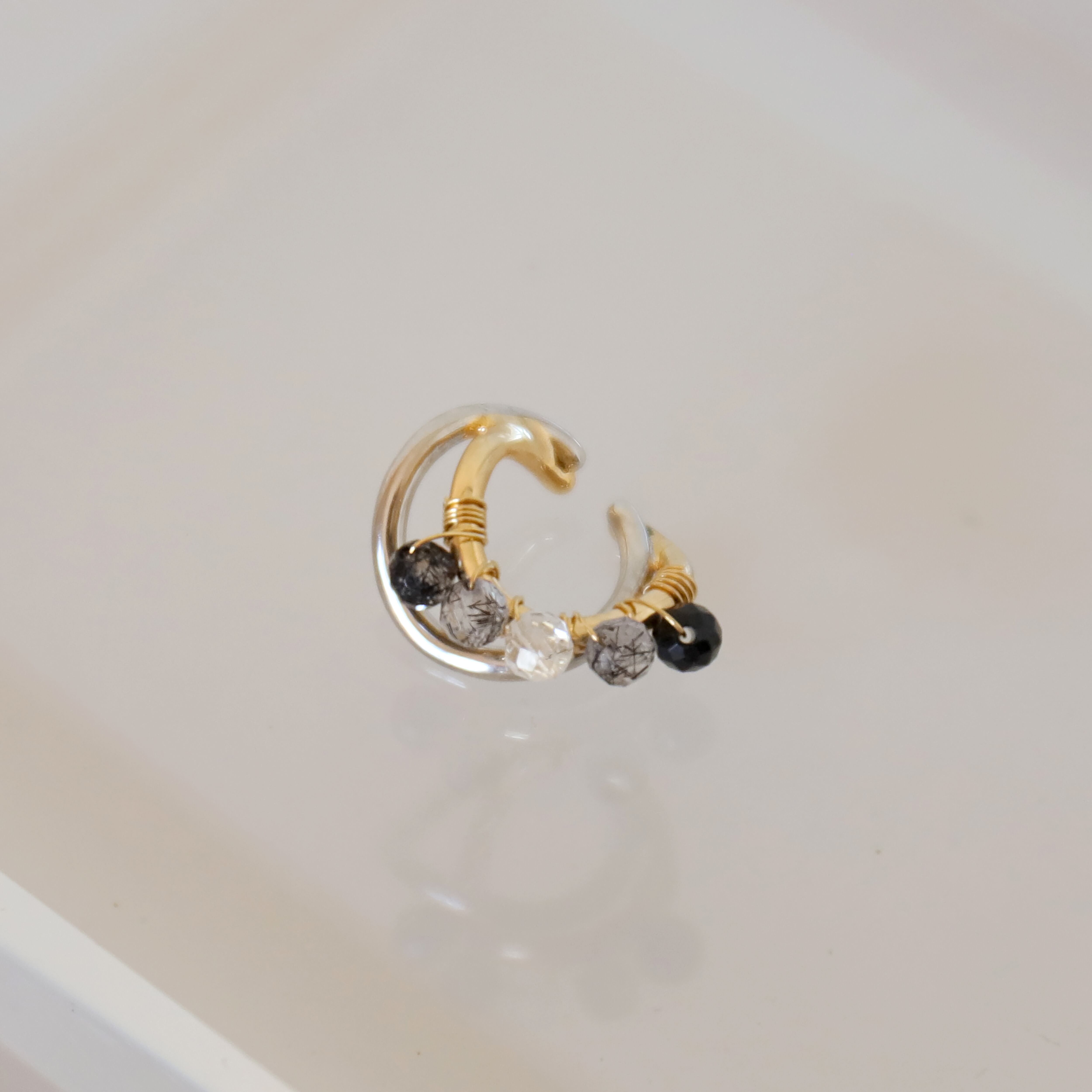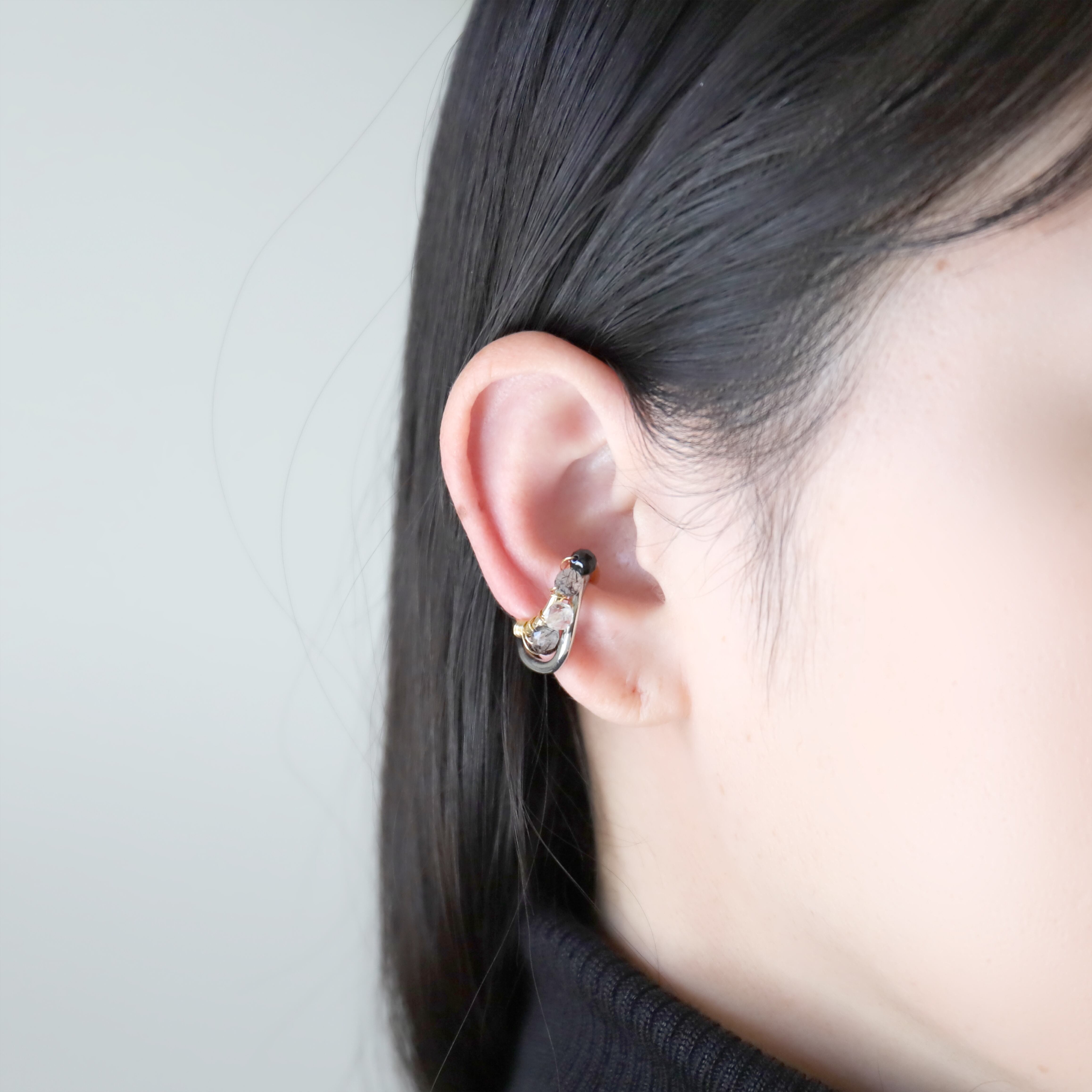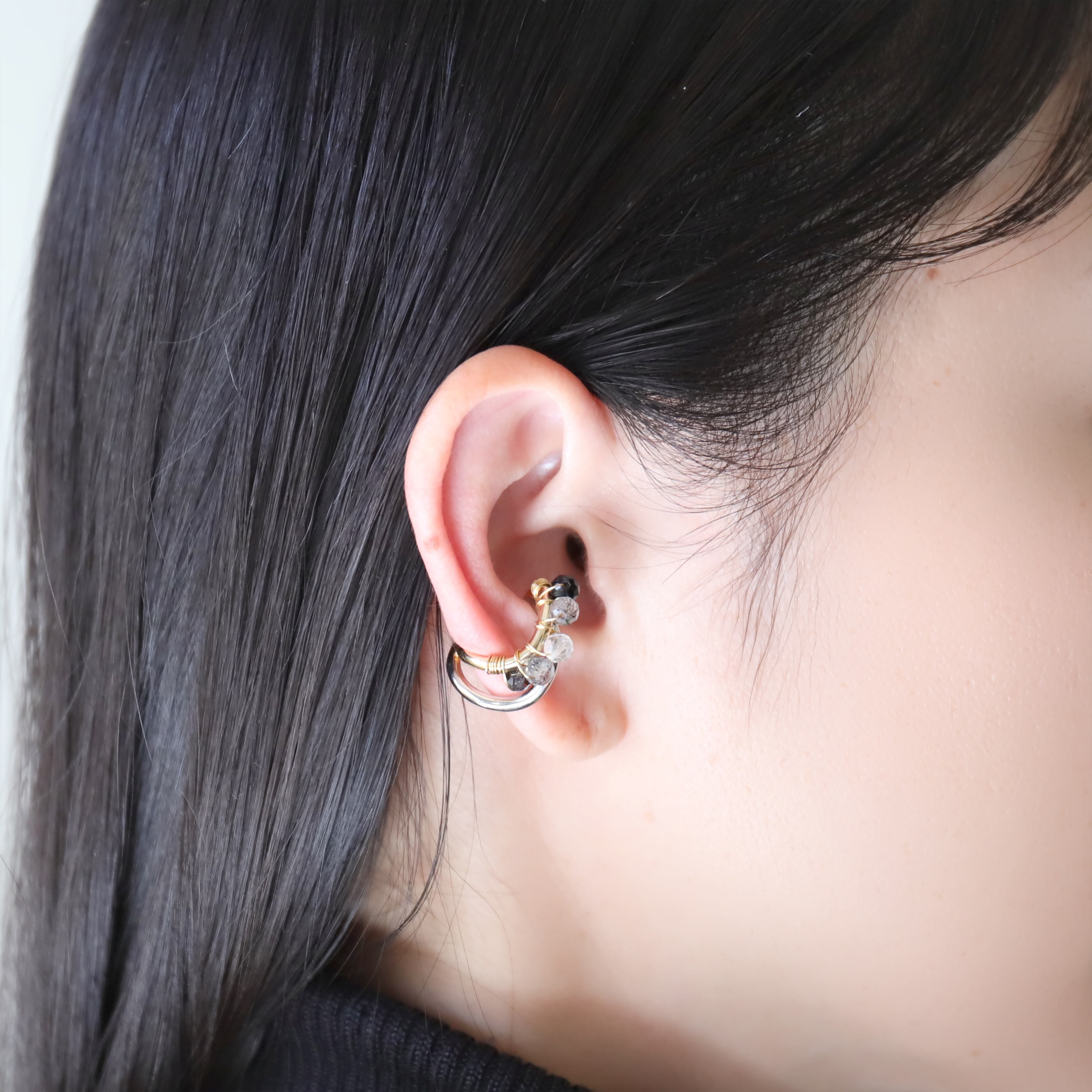 ゴールドカラーとロジウムカラーの2連イヤーカフです。
