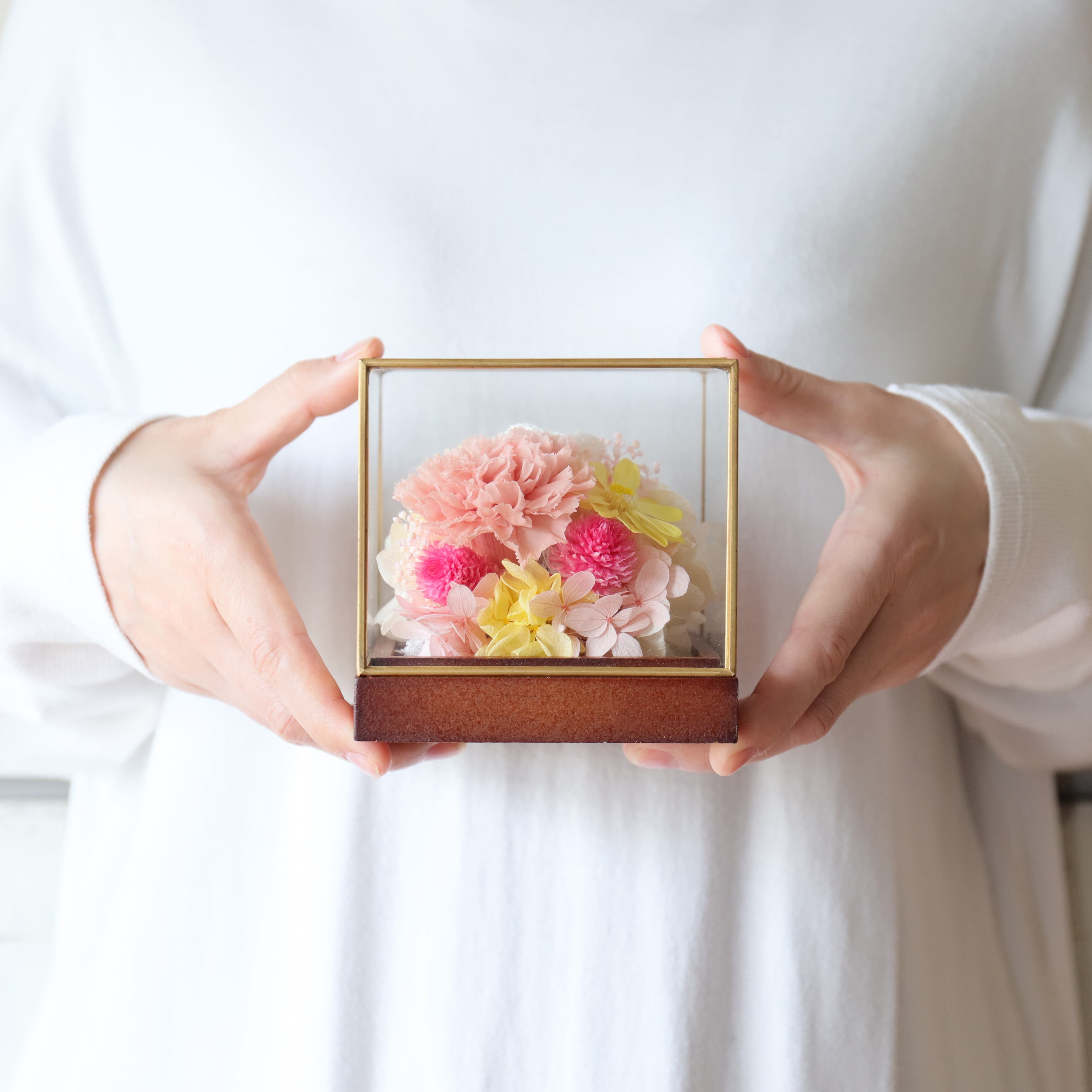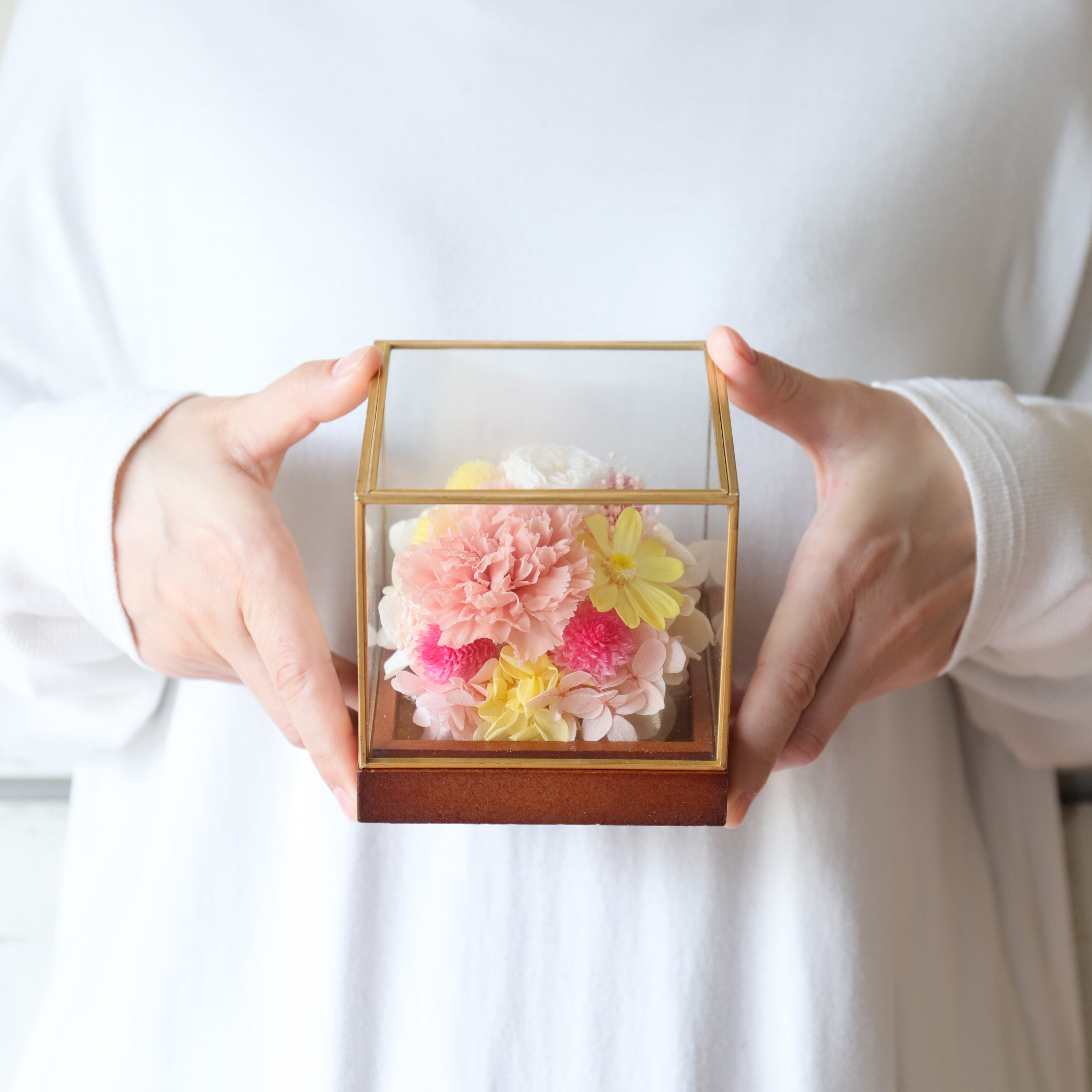 真鍮フレームがおしゃれなフラワーアレンジメントボックスです。