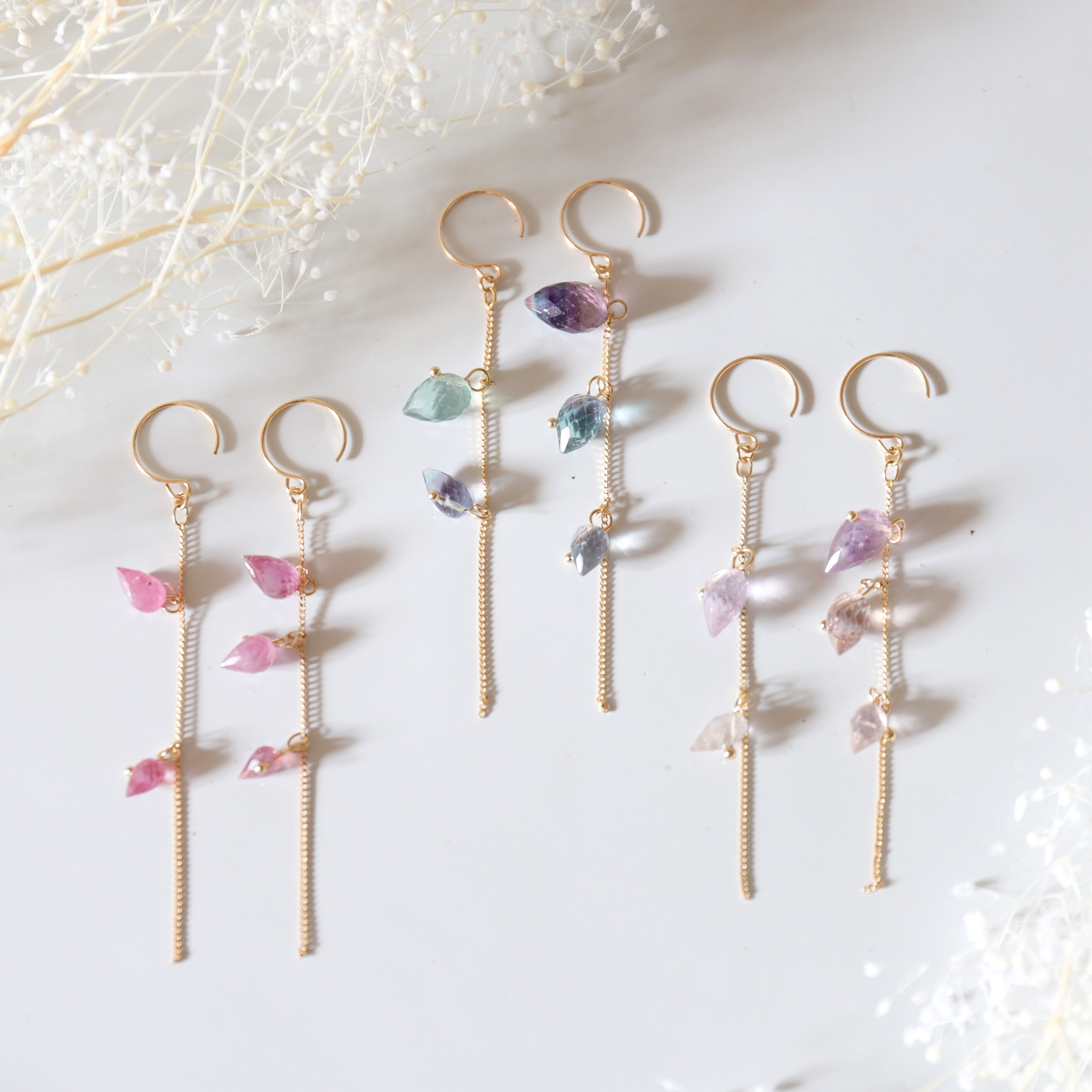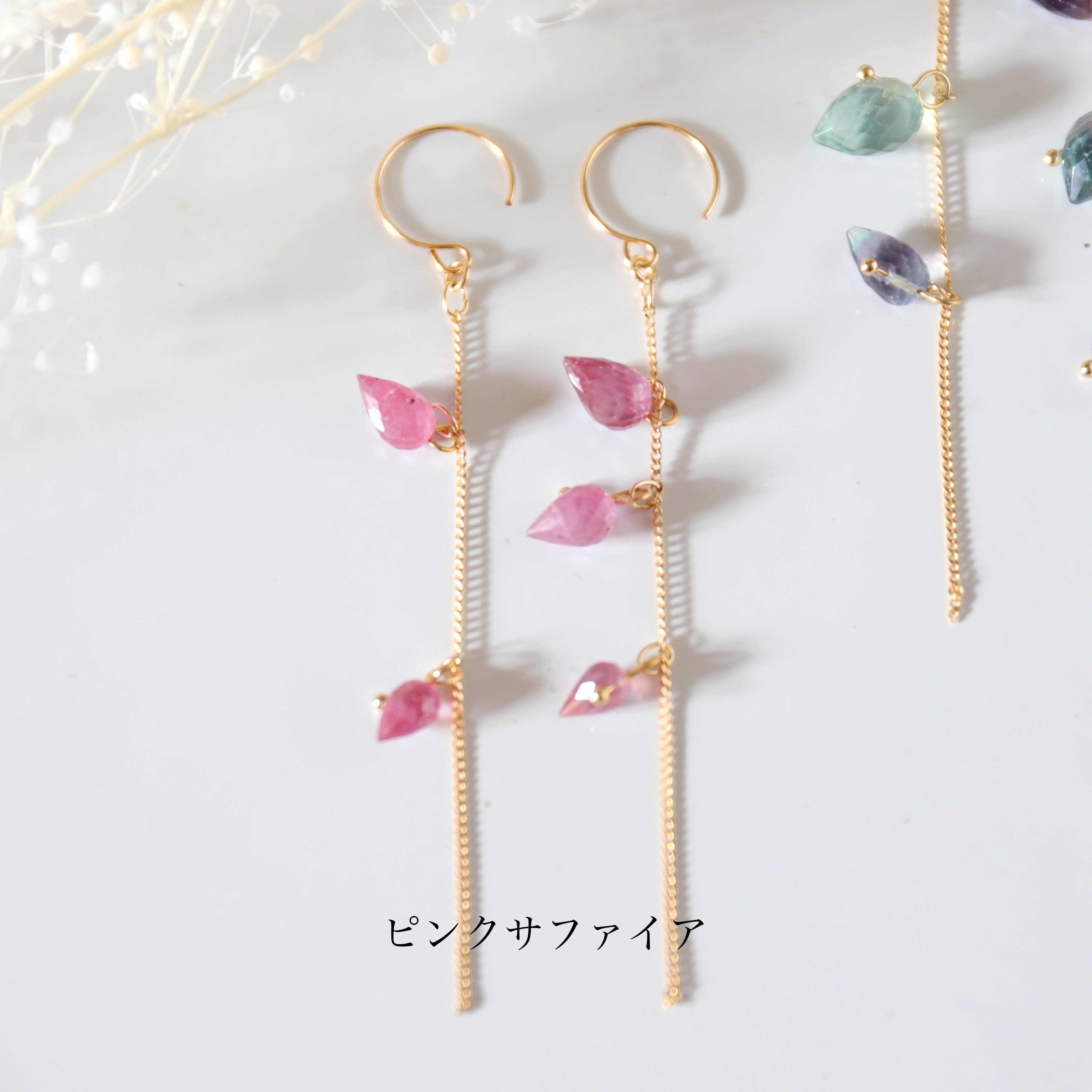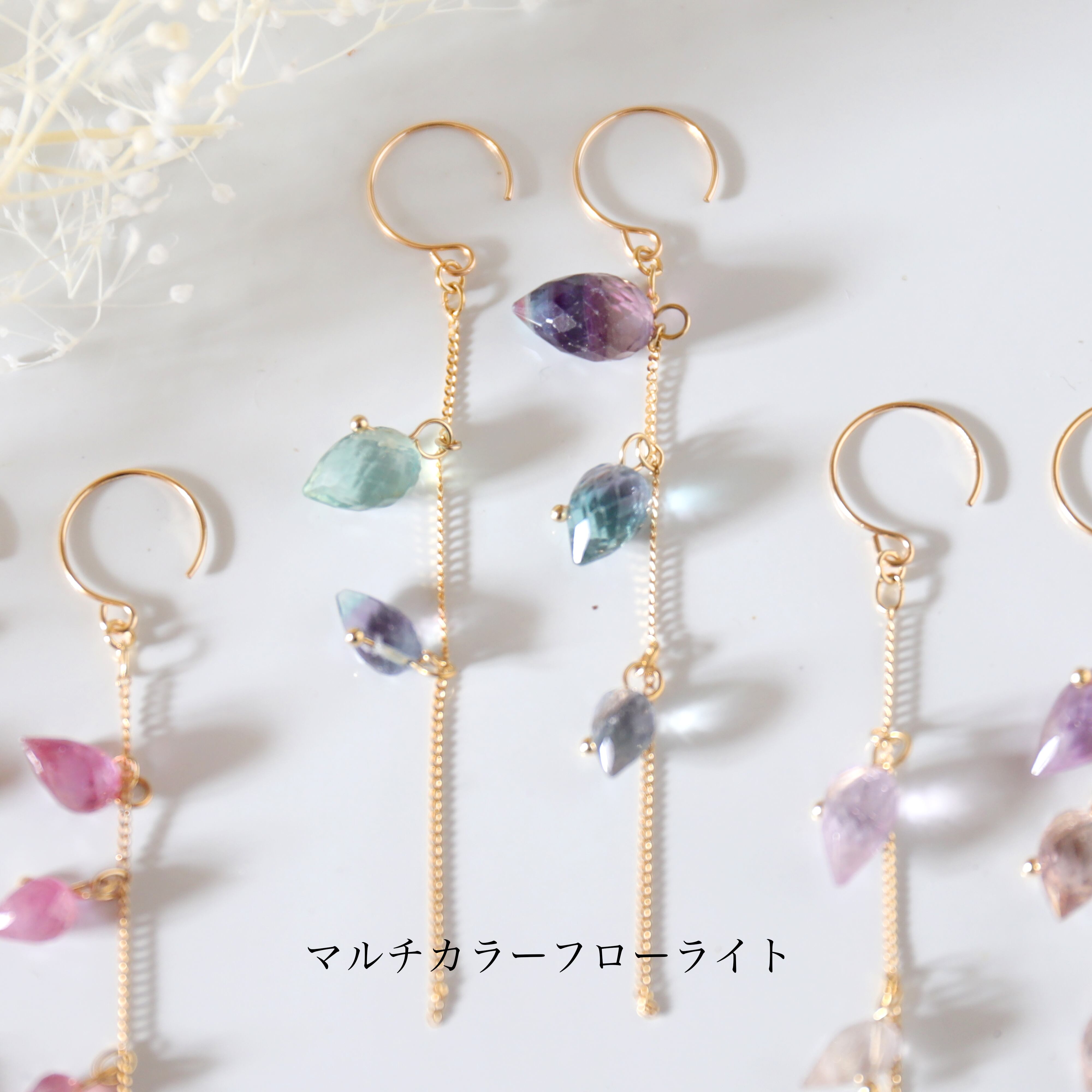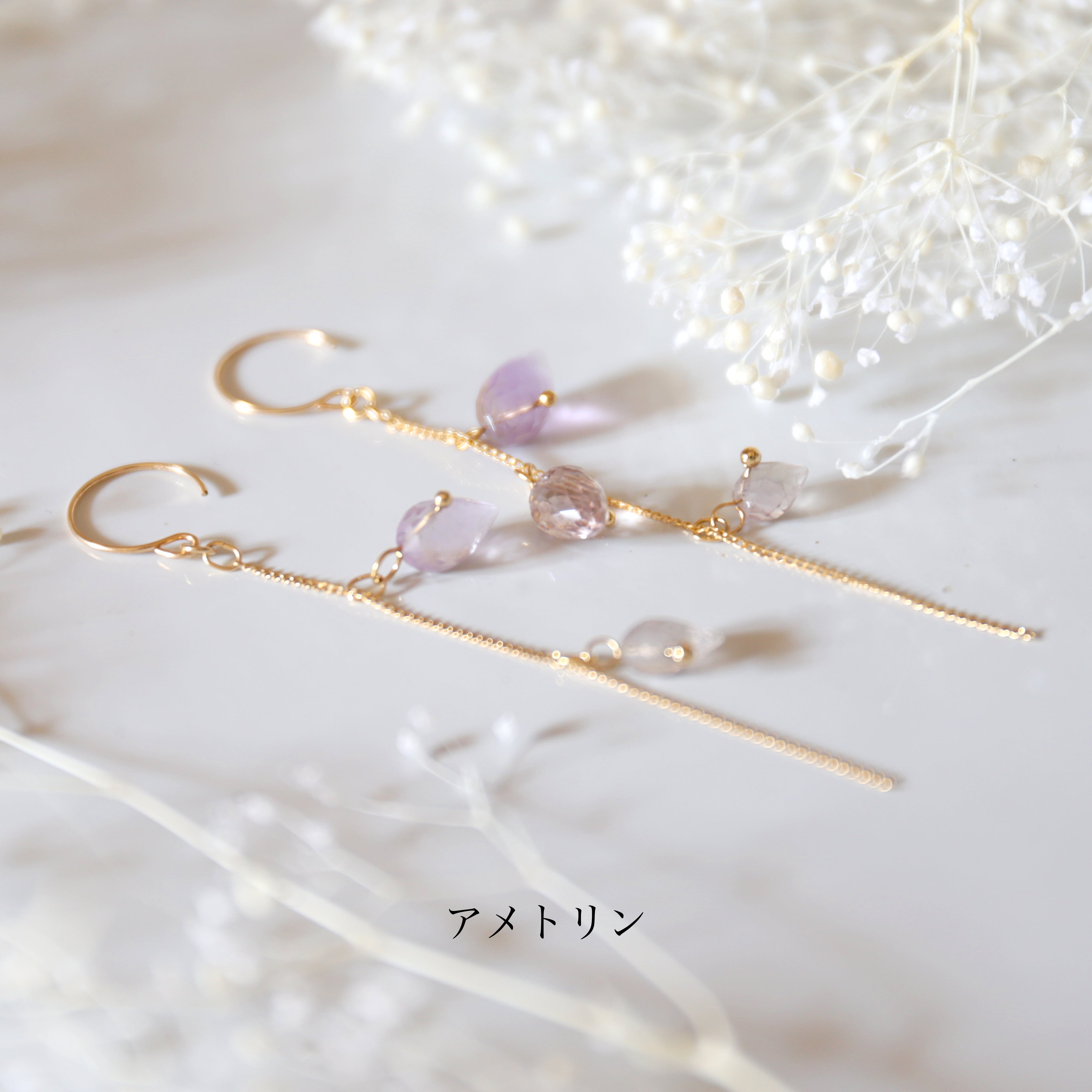 【3色展開】アシンメトリーなつぼみのドロップピアス(14kgf)・イヤリング(#1166・#1167)
