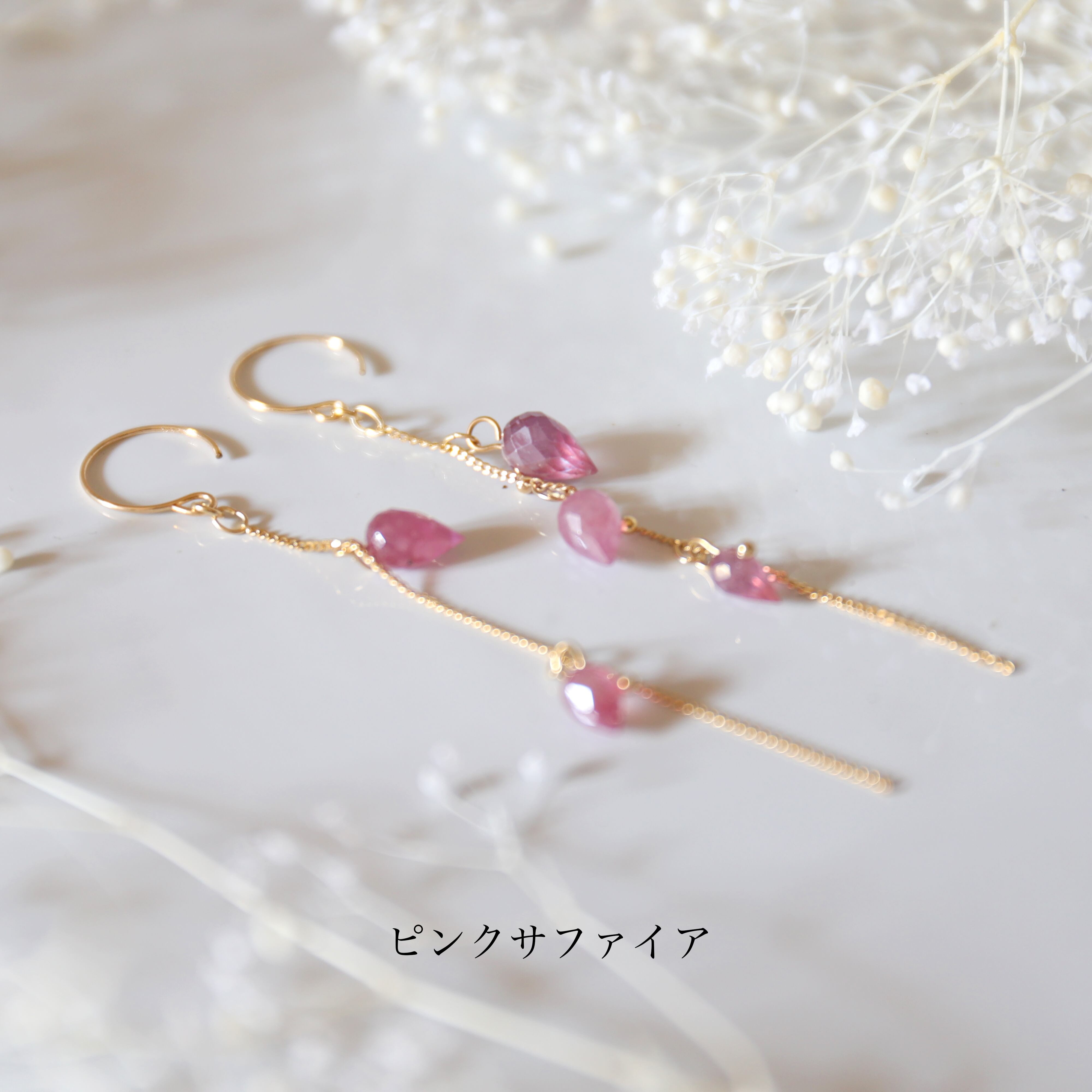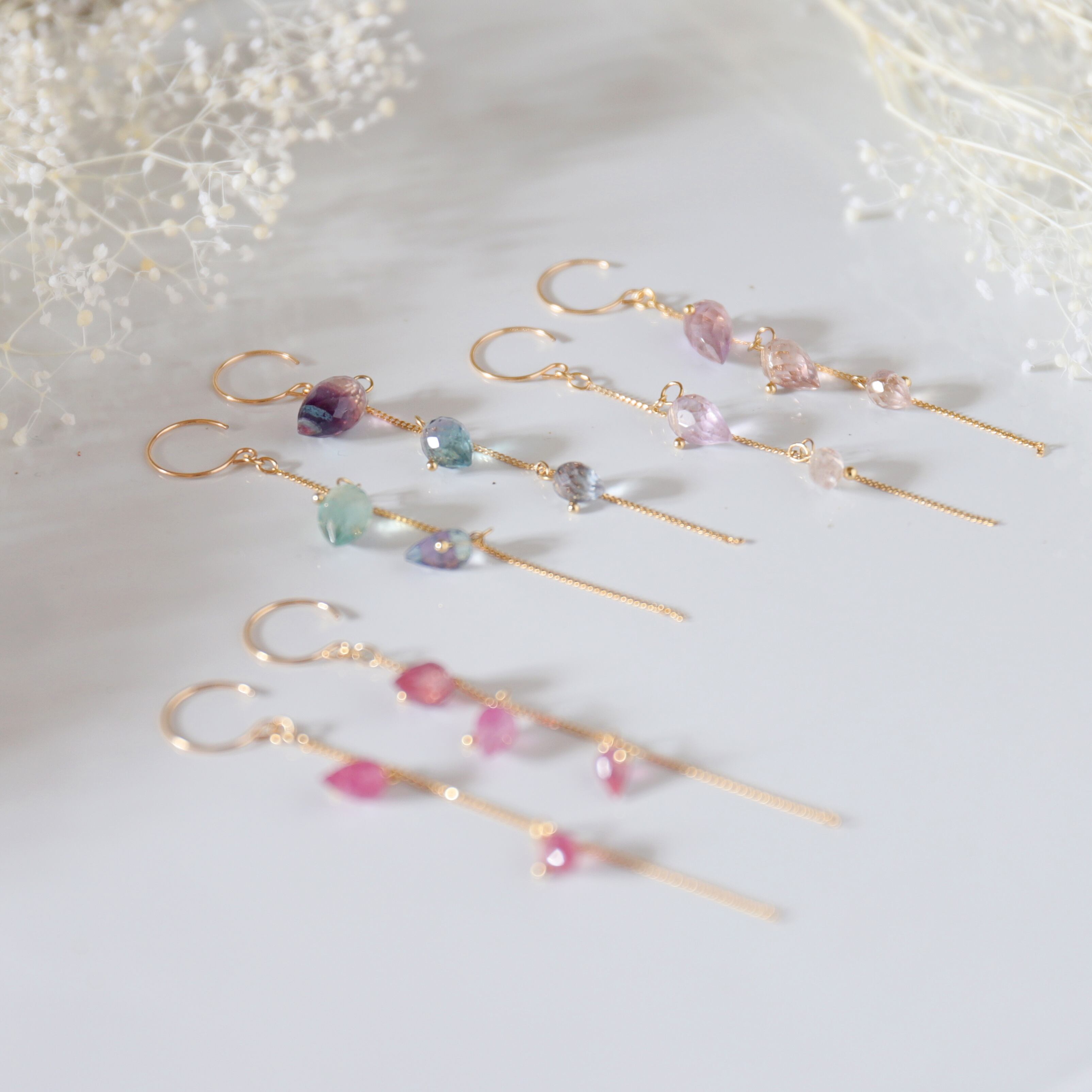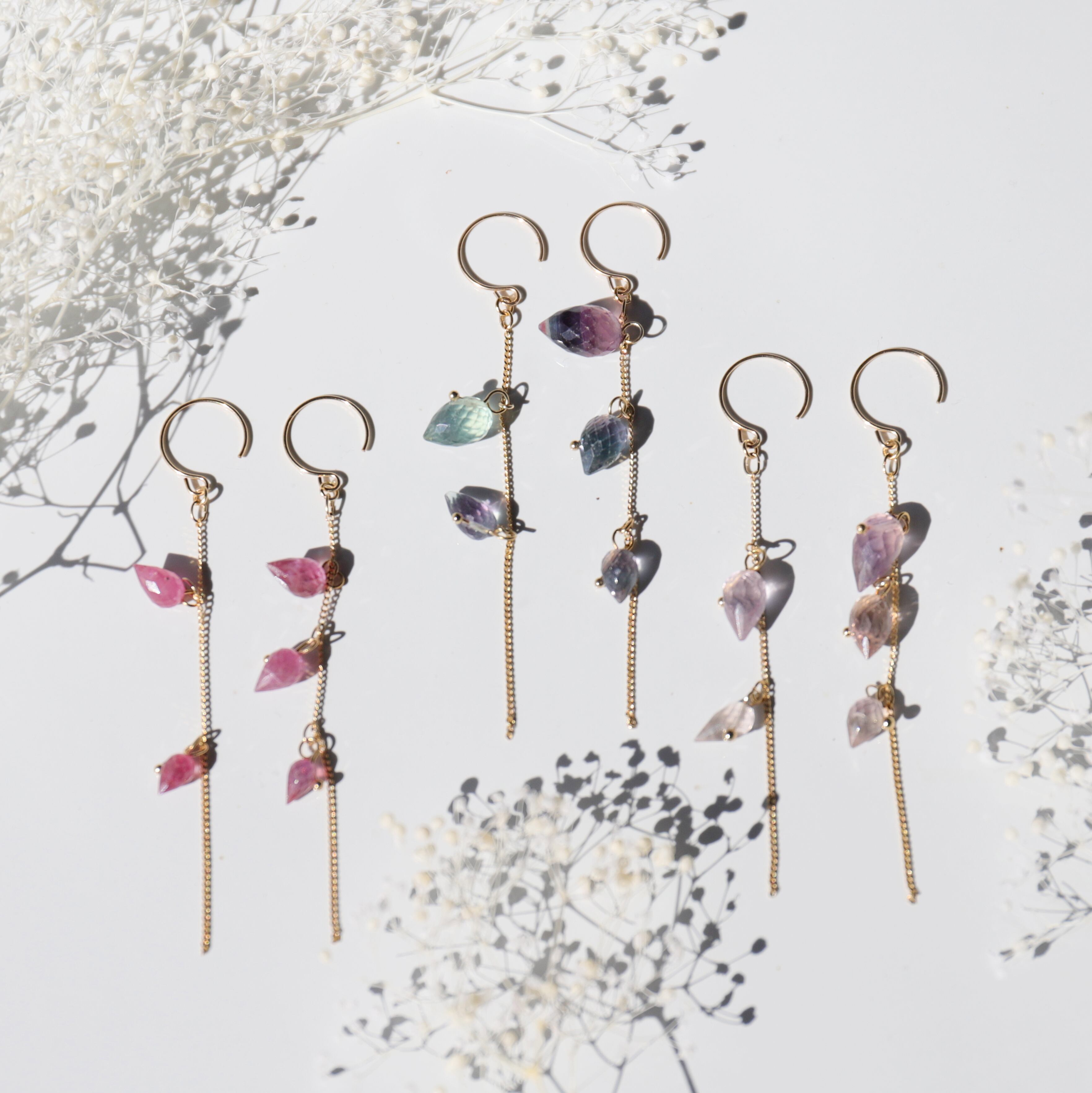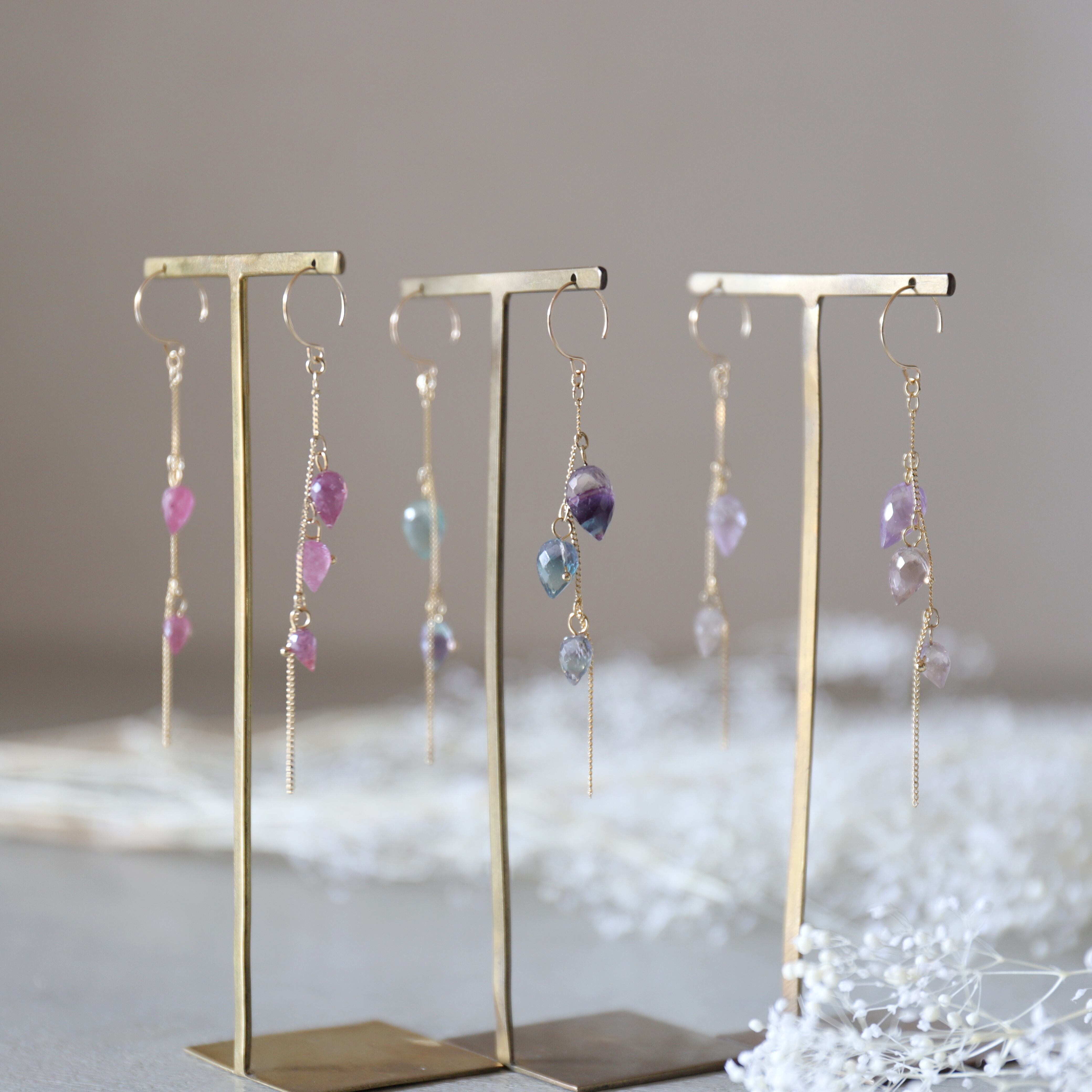 【3色展開】アシンメトリーなつぼみのドロップピアス(14kgf)・イヤリング(#1166・#1167)