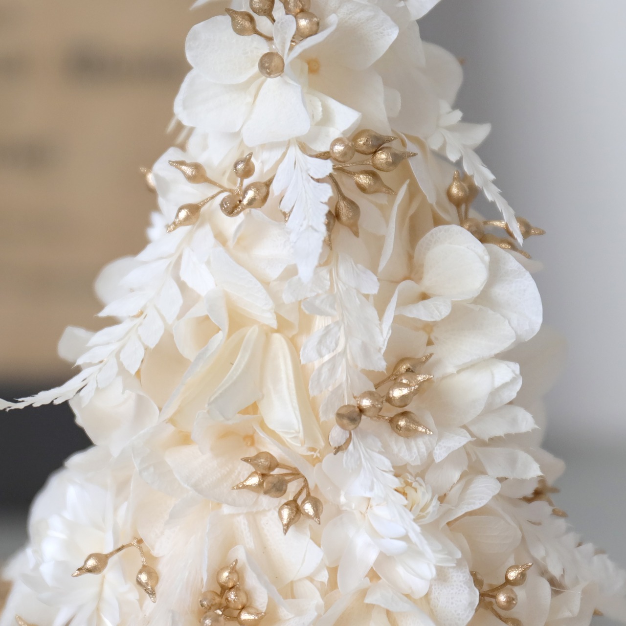 ホワイトのお花だけを集めてクリスマスツリーにしました。